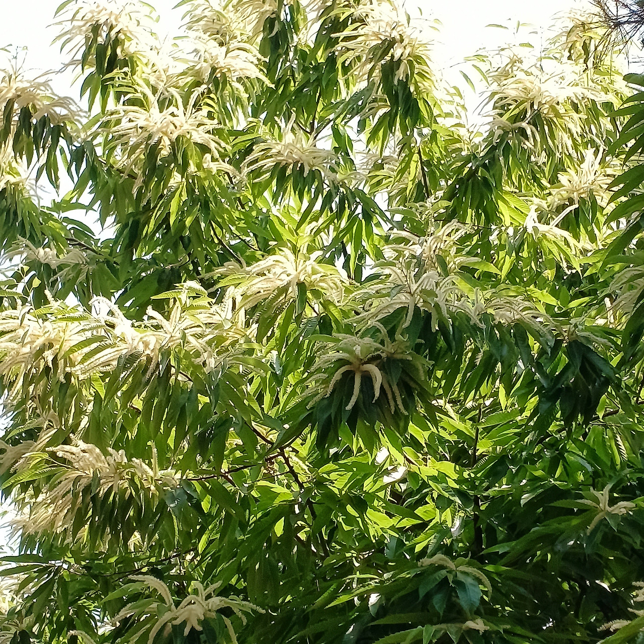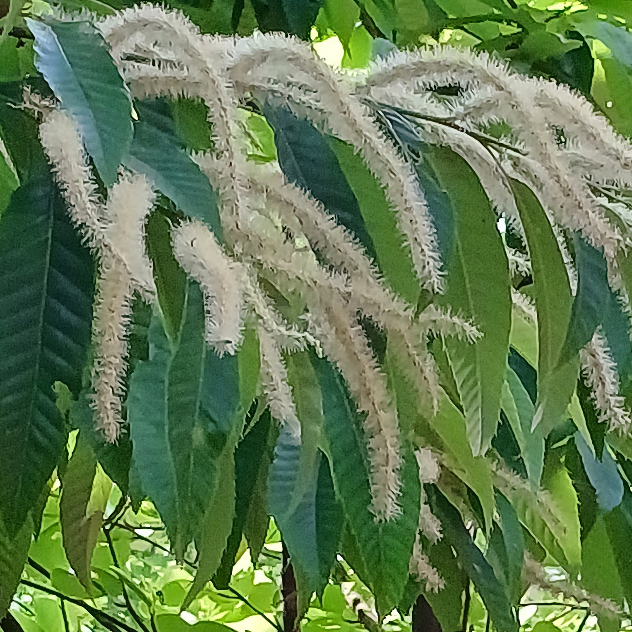 밤나무 꽃은 길게 늘어진 수꽃이 먼저 눈에 들어옵니다. 연노란 꼬리처럼 아래로 드리워진 꽃차례가 나무 전체를 덮으면, 숲은 순식간에 짙은 향으로 가득 찹니다. 그 아래, 작고 소박한 암꽃이 숨어 있습니다. 우리가 흔히 맡는 독특한 밤꽃 향은 대부분 수꽃에서 비롯됩니다.