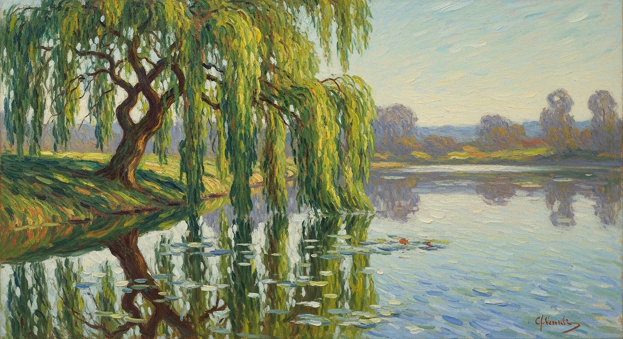 예술 속 수양버들은 울고 있는 나무가 아니라, 견디는 나무입니다. 흔들리면서도 중심을 잃지 않는 존재.