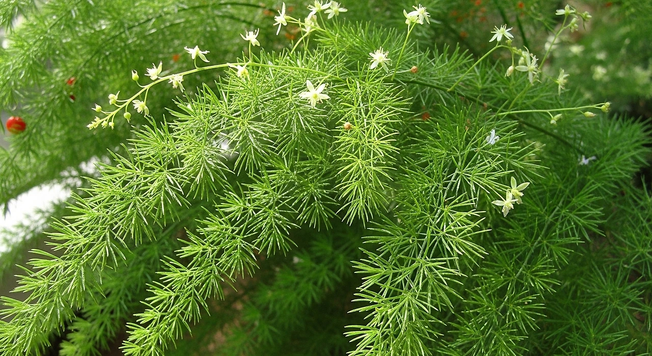 식용 아스파라거스와 달리, 관상용 품종은 덩굴처럼 자라며 실내 공간을 부드럽게 채웁니다. 가느다란 잎들이 햇빛을 머금으면 마치 연둣빛 안개가 방 안에 번지는 듯한 분위기를 만듭니다.