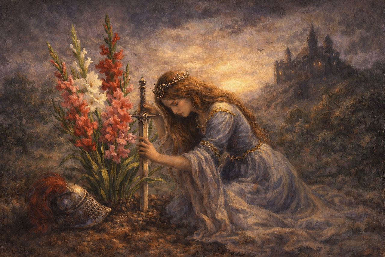 옛이야기 속에서 글라디올러스는 기사와 공주의 비극적인 사랑을 품은 꽃으로 전해집니다. 전쟁터에서 돌아오지 못한 기사의 칼을 땅에 묻자, 그 자리에서 피어났다는 꽃. 날 선 잎은 용맹함을, 화려한 꽃은 남겨진 사랑을 상징합니다.
