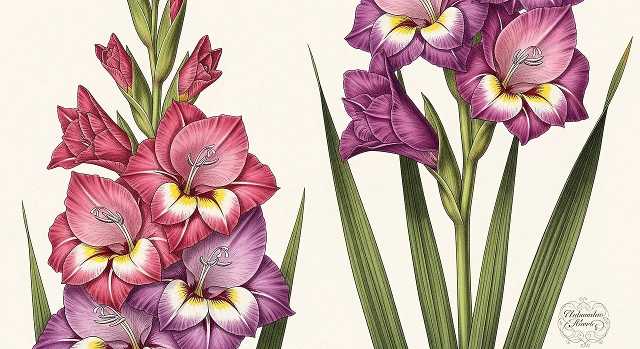 글라디올러스는 예술가들에게도 매력적인 소재였습니다. 특히 세로로 길게 뻗은 구조는 화면 구성에 강한 리듬을 만들어 줍니다.