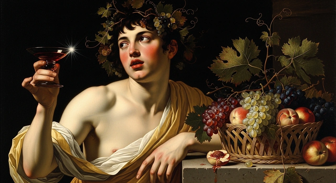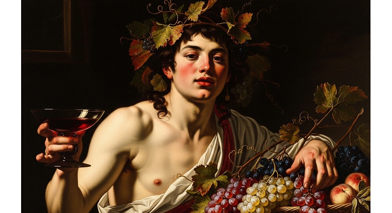 Michelangelo Merisi da Caravaggio의 「바쿠스(Bacchus)」에서는 신의 머리를 장식한 포도 덩굴이 생명력과 인간의 욕망, 그리고 확장되는 삶의 힘을 상징합니다.