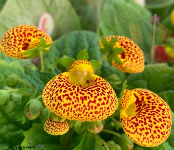 · 특징: 아래쪽 꽃잎이 주머니처럼 부풀어 오른 독특한 구조, 점무늬가 있는 화려한 색상