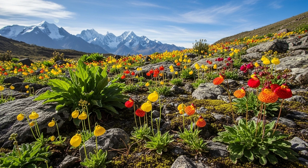 칼세올라리아는 안데스 산맥의 서늘한 고지대, 특히 칠레와 페루 일대에서 자생합니다. 낮에는 햇살이 강하지만 공기는 차고, 밤이면 기온이 뚝 떨어지는 환경 속에서 이 꽃은 단단한 생명력을 키웠습니다. 그래서인지 화려한 색과 달리 성질은 서늘함을 좋아합니다. 15~20℃ 안팎의 온도에서 가장 안정적으로 자라며, 고온다습한 여름은 힘겨워합니다.