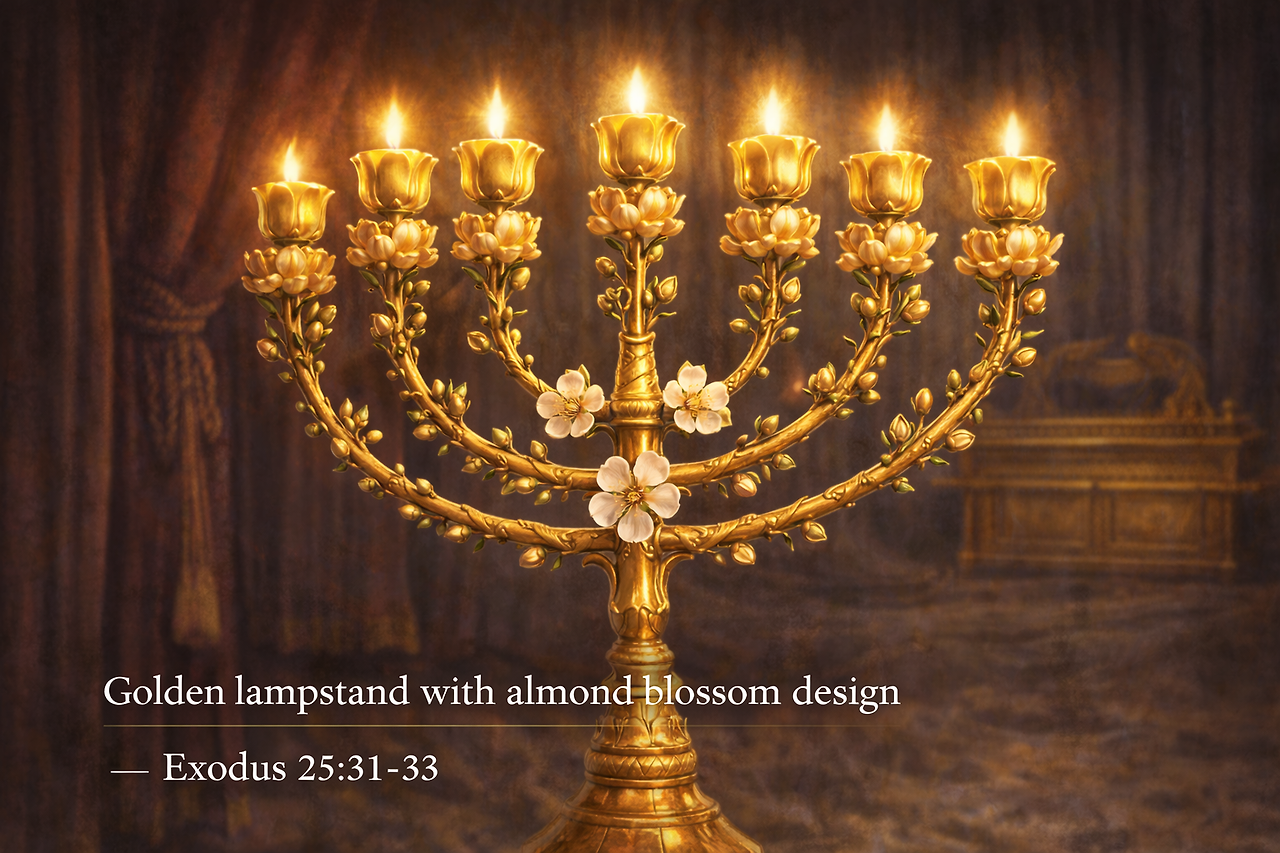 출애굽기 25장에 기록된 성막의 순금 등잔대 역시 아몬드 꽃 형상의 장식으로 만들어졌는데, 이는 신이 항상 깨어 이스라엘을 지키고 있다는 시각적 상징이었습니다.