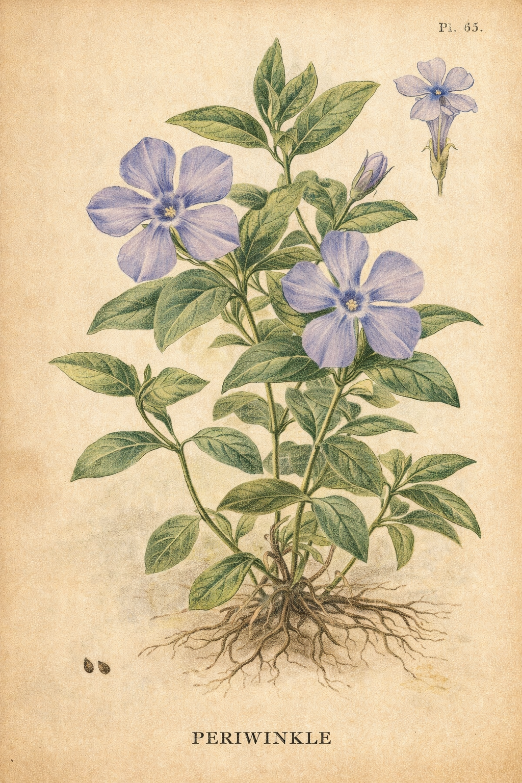 19세기 유럽의 식물 세밀화(botanical illustration)에서도 빙카는 자주 등장합니다. 빅토리아 시대의 식물 도감에는 빙카의 다섯 갈래 꽃잎과 별 모양 중심부가 정교하게 묘사되어 있습니다. 이는 단순한 장식이 아니라, 자연을 기록하고 보존하려는 시대의 열망이었습니다.