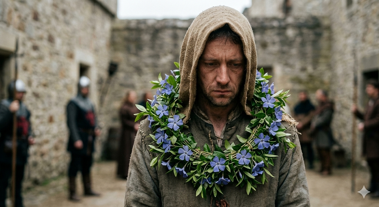 사형 집행장으로 향하는 죄수의 목에 빙카 화관을 씌웠다는 기록 때문에 ‘교수대의 꽃’이라 불리기도 했습니다. 동시에 이 꽃은 악령과 마녀의 저주를 막는 보호의 식물로 여겨져, 집 문 앞에 걸어두기도 했습니다.