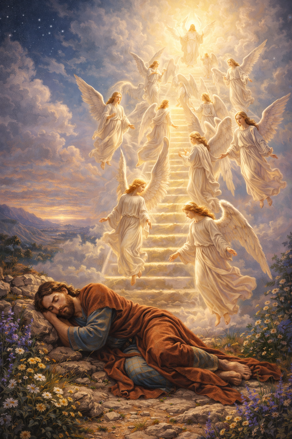 성경에 따르면 야곱은 어느 날 꿈속에서 땅과 하늘을 잇는 거대한 사다리를 보게 됩니다. 그 사다리 위로 천사들이 오르내리는 신비로운 환상이 펼쳐졌다고 전해집니다.