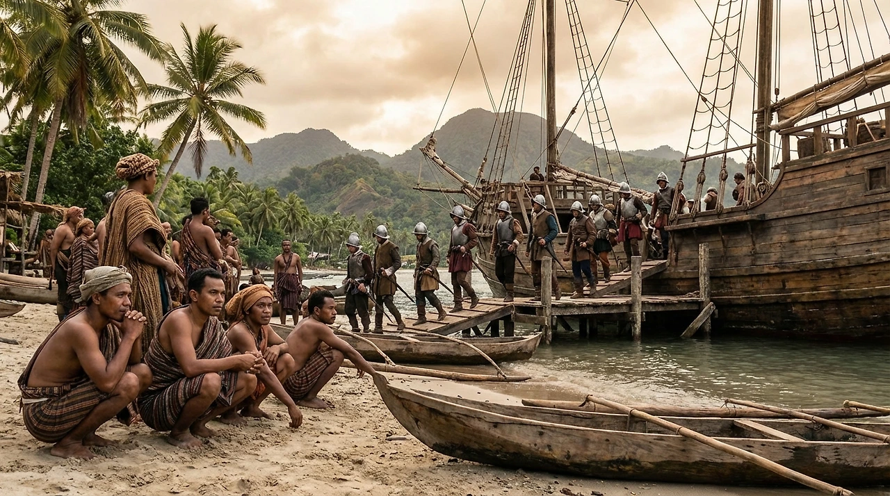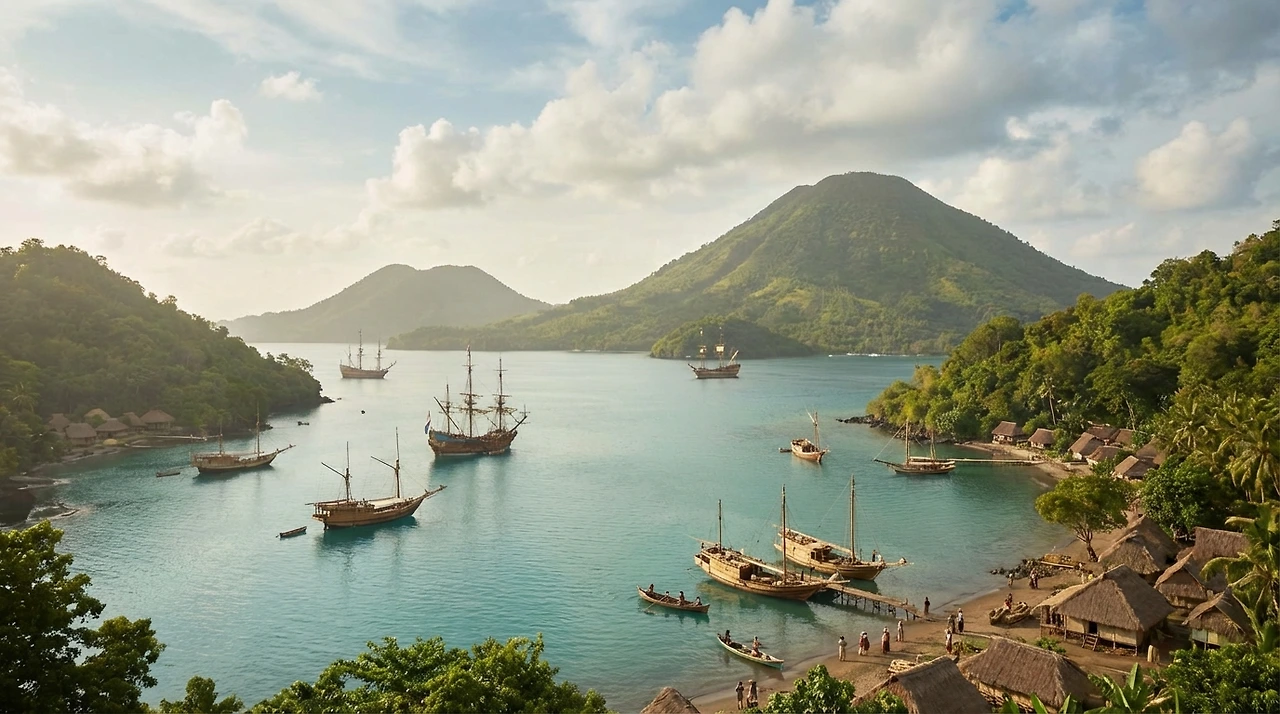높은 돛대와 거대한 선체를 가진 배들이 말루쿠의 바다에 모습을 드러냈습니다.
