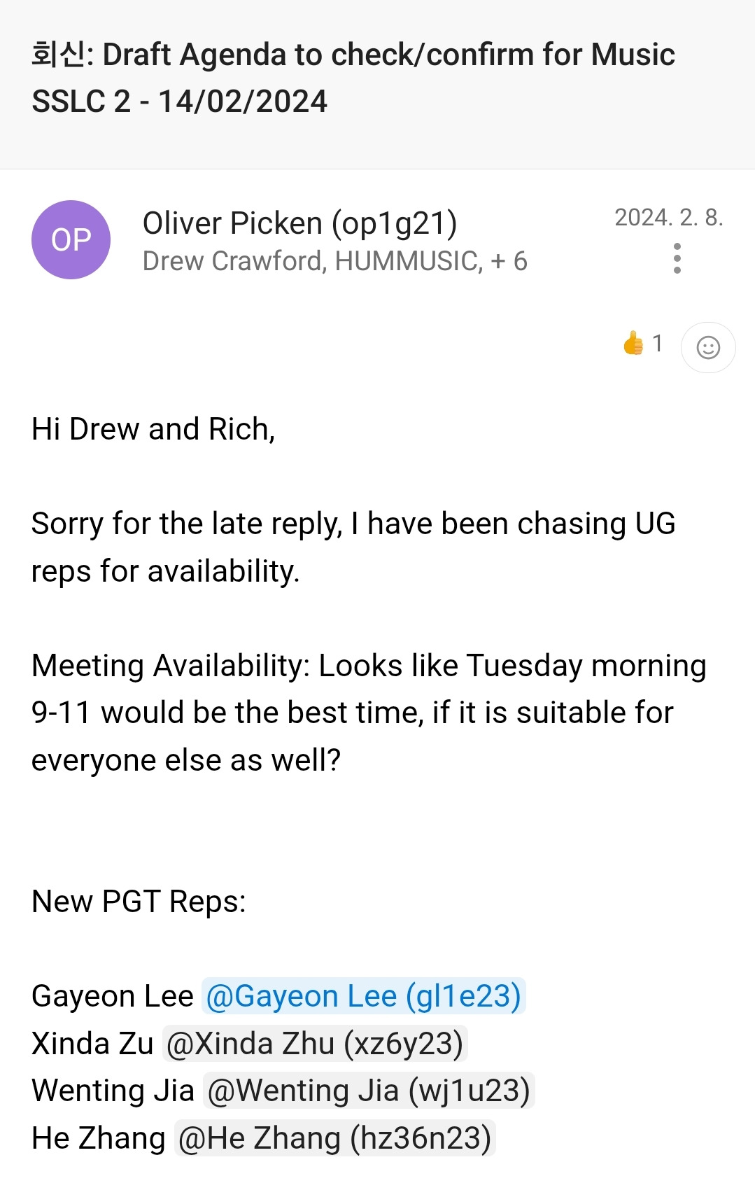 어느 때처럼 내 홈페이지를 보다가 문득 '어라? 음악학부 학생대표 했다는 증거 자료가 없잖아?' 생각이 들었다. 상 최종 후보에 올랐던 건 초대장과 시상식 사진이 있고, 학생 홍보 활동한 건 인터뷰 페이지와 학교 유튜브 영상으로 남아 있다. 그런데 학생 대표도 나름 중요하게 작용하는데, 회의 참석하면서 한 번도 기념사진을 찍은 게 아니라 흔적이 없었다.