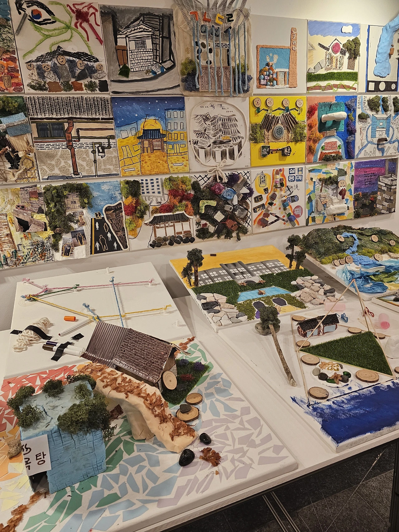 '이게 왜 건축 전시회에 있지? 이건 예술이잖아.' 싶은 것들도 있었다. 그럼 내가 미니어처를 만든 다음에 '이건 건축이다' 하면 건축인가. 지게도 있고, 병풍도 있고 다양했다. 아래는 청소년들이 생각하는 북촌을 표현한 거라고 한다.