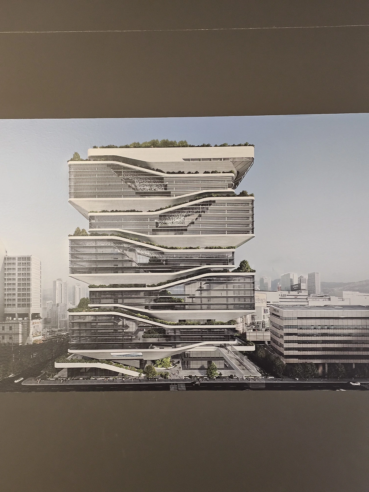 전시되어 있는 사진들만 보면, 앞으로 서울이 아주 미래 도시가 될 거 같았다. 아래와 같은 자연과 건물이 공생하는 건물이 많아지면 좋겠다. 평생 아파트 단지에서 살았다 보니, 또 지금 여의도에 살다 보니, 높은 건물만 있으면 좀 답답하다. 그래서 사진 속 건물이 마음에 들었다. 한국은 건축물들 다 못생겼다는 말이, 좀 취소가 되지 않을까. (유럽하고 비교하면 안 된다.)