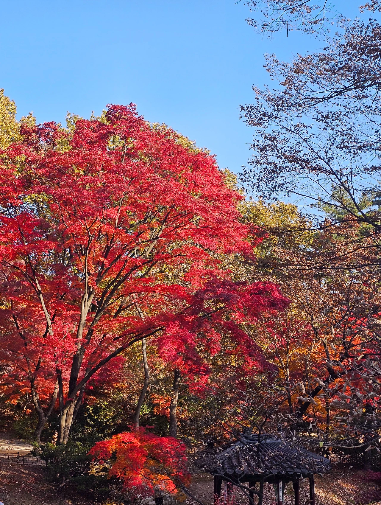 하이라이트는 궁이 아니라, 나무들이었다. 나무를 보고 '대박이다' 할 일은 잘 없다. 그런데 이 공간으로 들어서자 '단풍 대박이다'라는 말이 절로 나왔다. 그 많은 시련을 겪은 한국 땅에, 이렇게 몇백 년 된 나무 참 귀하다.