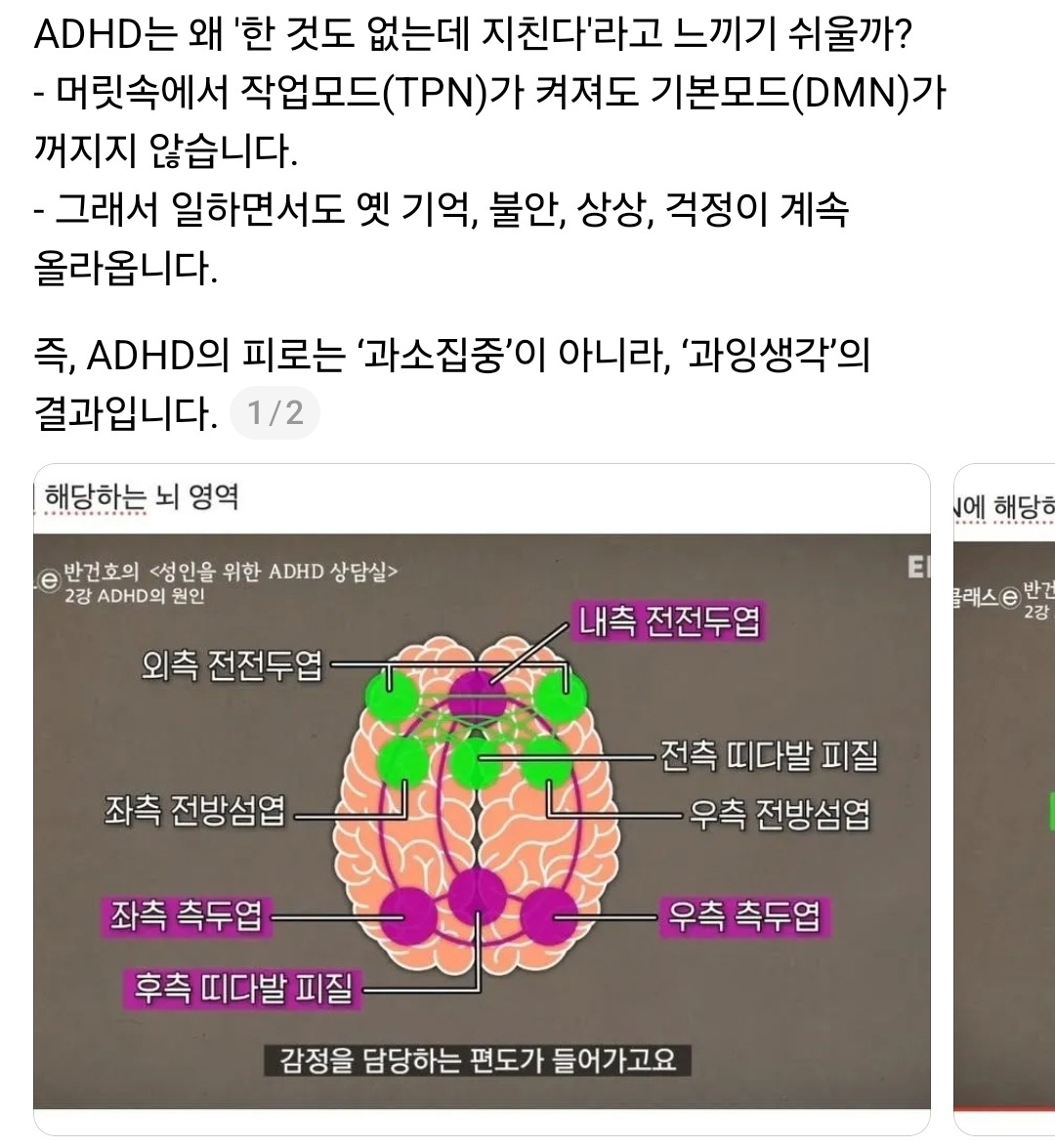 작업모드가 켜져도 기본모드가 꺼지지 않는다. 그렇다면 ADHD인이 잡생각이 안 날 정도로 정신 없이 일이 많으면? 신체화 증상 나타난다. 절대 지속될 수 없다.