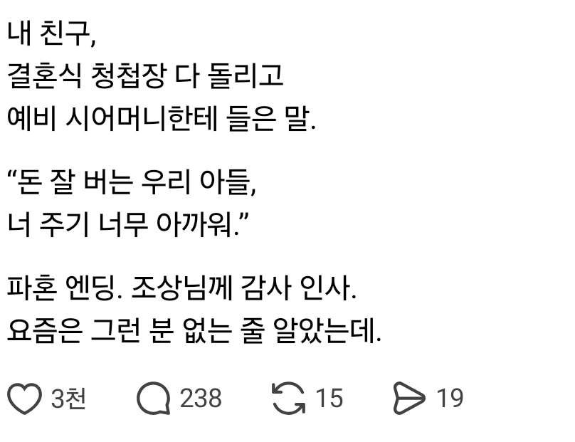 그냥 결혼할 두 사람이 서로 사랑하지 않은 거다. 이래서 온갖 연애 콘텐츠를 피하는데, 가끔 저렇게 뜨면 무시하기가 어렵다.