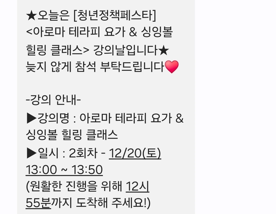 오늘의 나랏돈 이용하기는 요가 클래스였다. 사실 요가 클래스인 걸 거의 모르고 갔다. 문자를 다시 한번 살펴보니, 아로마 테라피 요가 & 싱잉볼인데, 나는 어찌 된 탓인지 머릿속에 아로마하고 싱잉볼만 있었다.