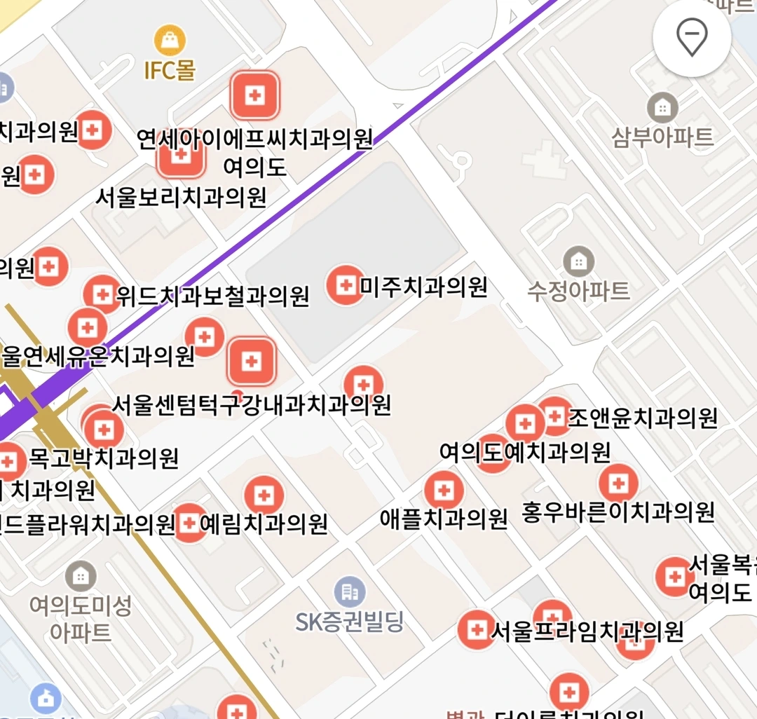 영국 살 때 병원 한 번 안 가봤다. 지금 집 근처에 '치과'만 검색해봤다. 어디가 아프든 바로 병원 갈 수 있다. 내가 다니는 정신과만 제외하고. 여긴 며칠에서 일주일 정도 대기가 필요하다. 근데 이건 여담인데.. 저렇게 많아서야 치과 차려도 안 망하나..? 요즘은 과잉진료하면 다 아는데.