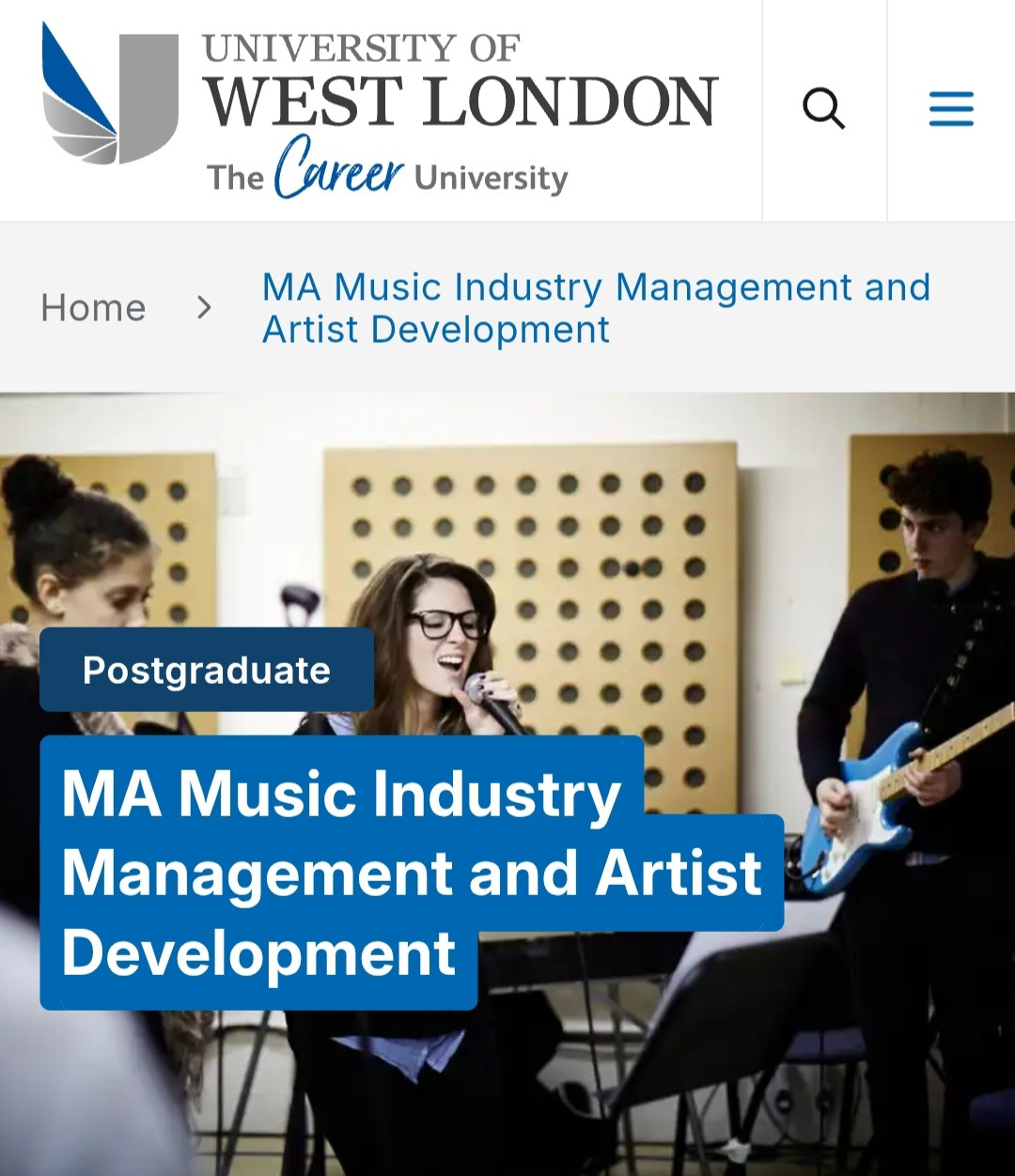이 학교는 과거에 뮤직 퍼포먼스 전공으로 합격했던 학교 중 하나다. (학교를 런던으로 안 간 걸 매우 후회했는데, 이름만 봐도 런던이다.) 당시엔 저 전공은 알지도 못 했다. 그런데 이제 만일 석사를 한 번 더 할 수 있다면, 가장 유력한 전공은 음악 산업에 대한 전공이다.