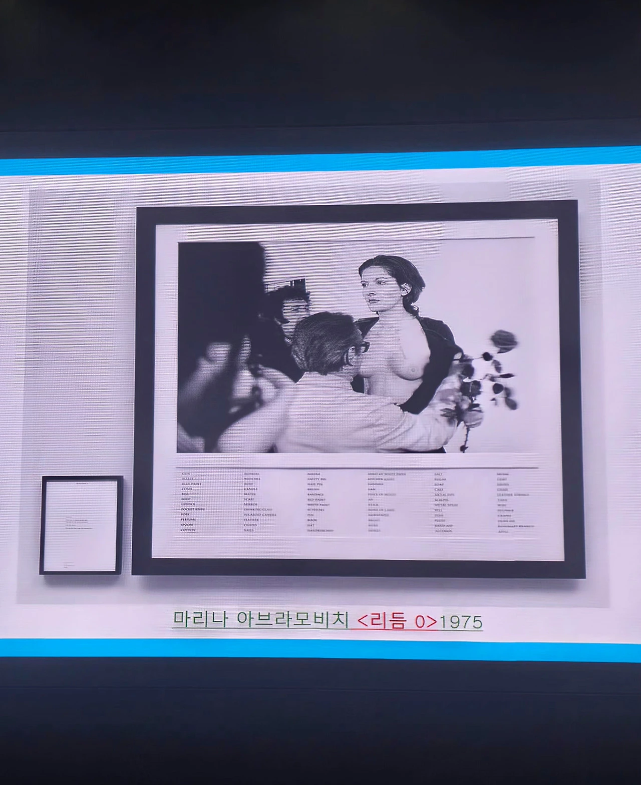 행위예술가 마리나 아브라모비치 작품도 나왔다. 행위예술은 이미 지나간 것이기 때문에, 이를 설명하는 사진이 미술관에 걸려있다. 이 행위예술가는 인스타였는지, 유튜브였는지 영상을 통해 보고, 신기하단 생각에 더 찾아봤었다. 이 사람을 통해 '행위예술'이라는 걸 처음 알았다.