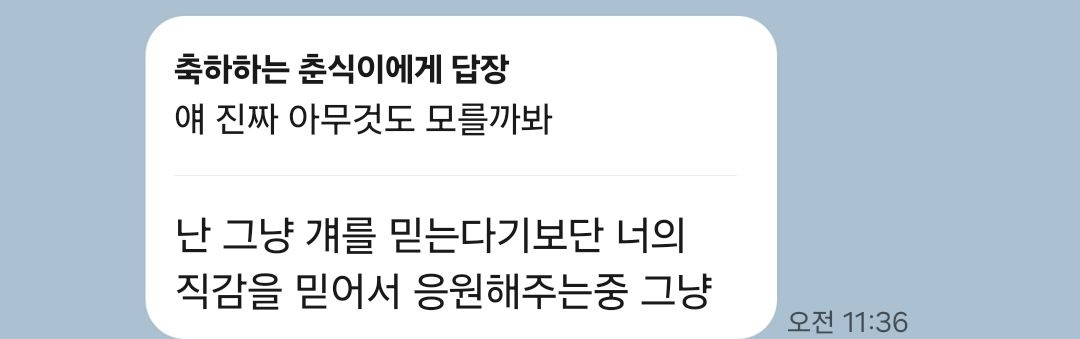직감을 더 믿어줄 거다. 그런 내 직감을 믿어주고 응원해 주는 친구도 있다. 지난 2년 동안 곁에서 날 지켜보니, 내 직감이 거의 다 맞다고 그냥 행동하면 될 거 같다고 했다. 남이 날 믿어주는 만큼 날 믿자.