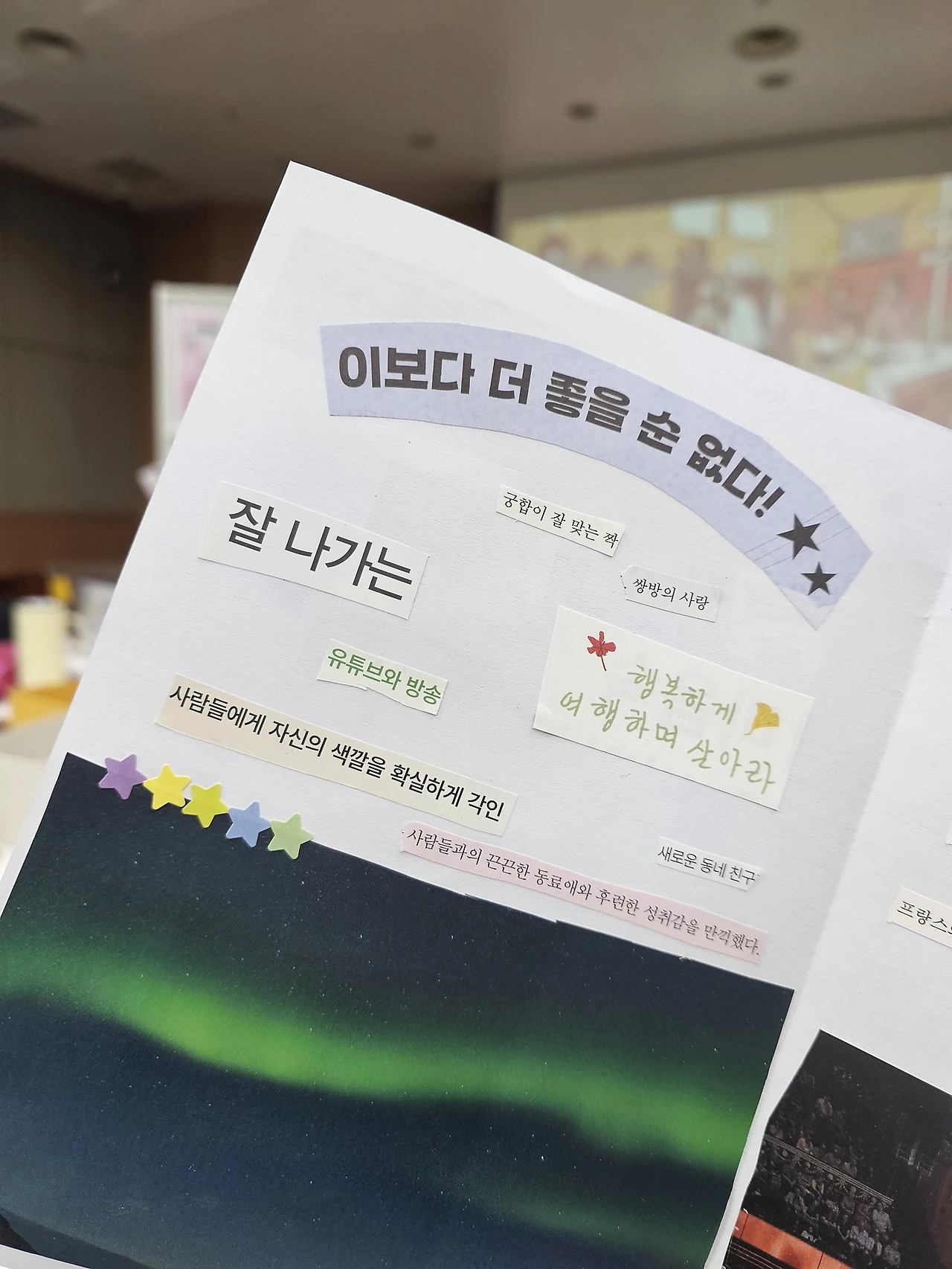 오로라 사진을 붙인 데에도 이유가 있다. 영국에 있을 때 오로라를 태어나서 처음으로 볼 수 있는 기회가 있었다! 사우스햄튼에 아주 잠깐, 몇 분 동안 오로라가 나타났었다. 그런데 친구 카톡을 확인하고 창문을 연 순간, 그땐 사라진 뒤였다. 밤에는 커튼을 치고 살던 바람에 눈앞에서 놓쳐버렸다. 다음 날 보고 싶어서 바닷가 공원에도 갔지만, 다음 날엔 나타나지 않아서 너무 아쉬웠다. 하지만 살면서 오로라를 볼 수 있는 기회가 또 올 거다.