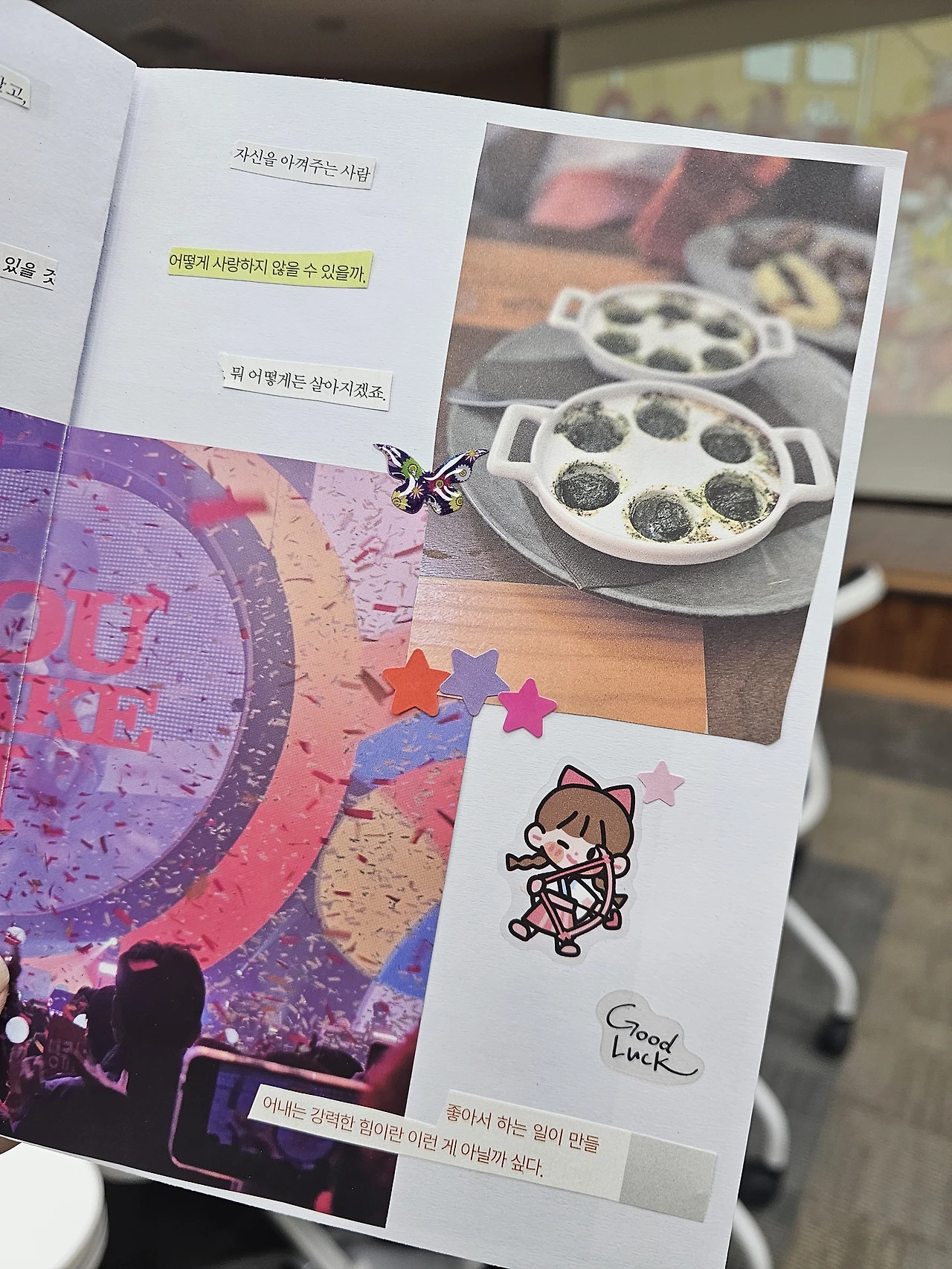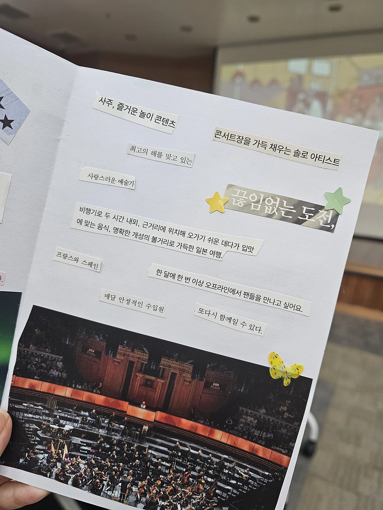 아무래도 잡지에 가수들의 인터뷰가 수록된 경우가 많아, 나에게 유리하다. 나도 무대를 끝내고 바로 죽지 않을까 싶을 정도로 무대를 너무 좋아한다. 공연 일정으로 가득 찬 건, 힘들지 않을 것이다. 무대에 있을 때 살아 있음을 느끼니까.