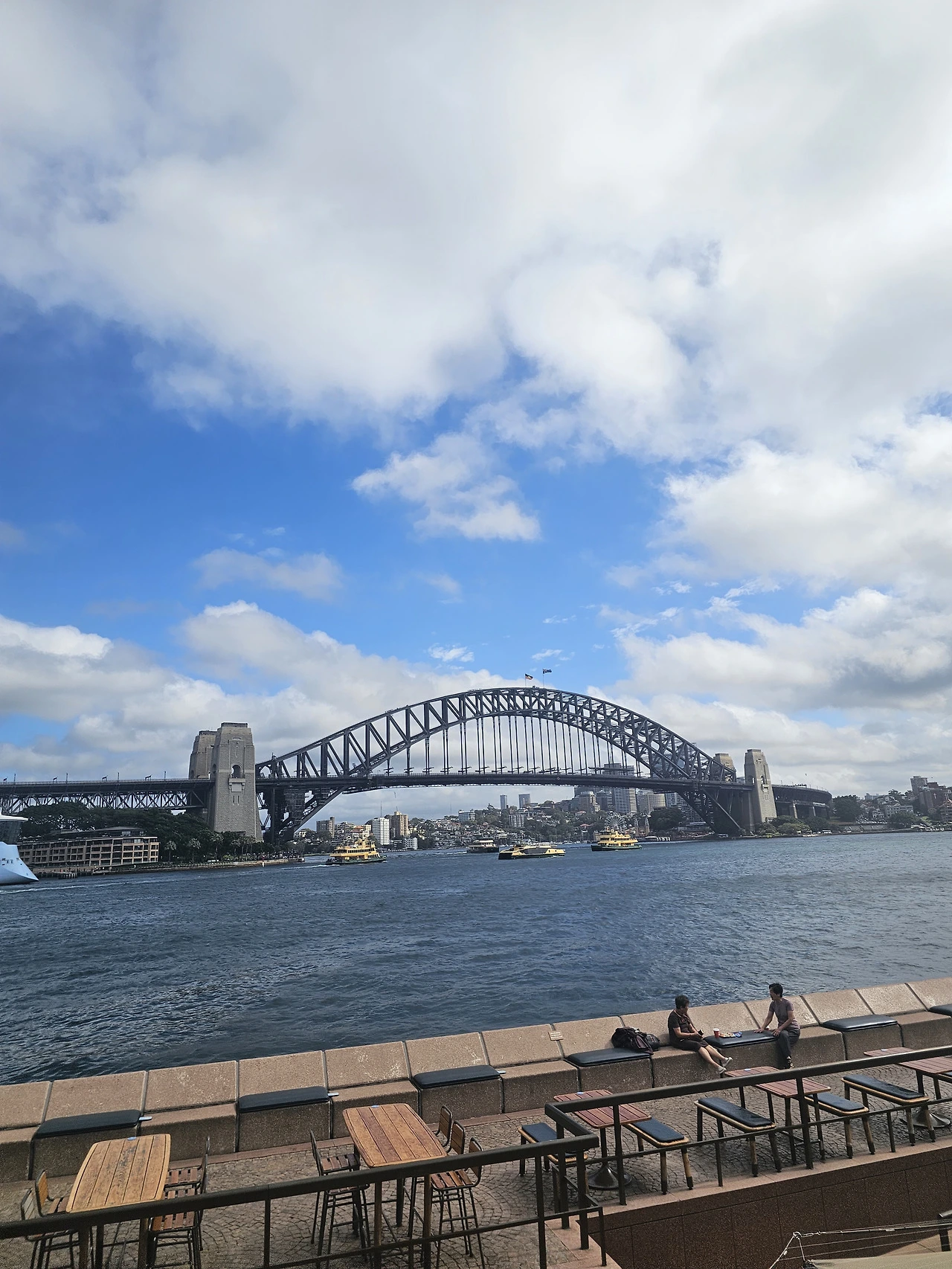 아침에 호텔 문을 나서자 비가 오니 추워서 다시 들어가 긴 바지로 갈아입었다. 그런데 갈아입고 나오니까 비가 그쳐서 반바지 입었어도 될 거 같았다... 금방 군데군데 푸른 하늘을 볼 수 있었다. 날씨 진짜 영국 같다. 감사하게도 푸른 하늘의 하버브리지와 오페라하우스 영상을 담을 수 있었다.