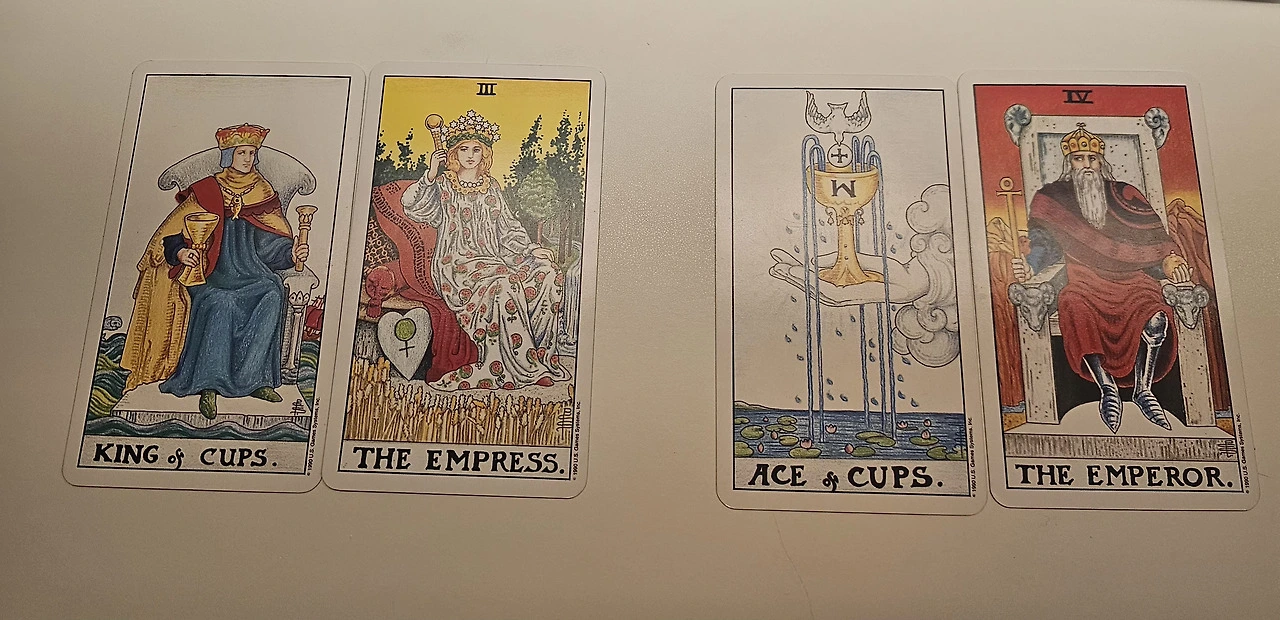 아래는 여러분들이 어느 방송에서든 쉽게 볼 수 있는 카드입니다. 그냥 '타로 카드'라고 하면, 이 카드를 말해요. 아래 그림을 보고, 두 사람이 서로 마음은 있어도 잘되긴 어렵다고 생각했어요.