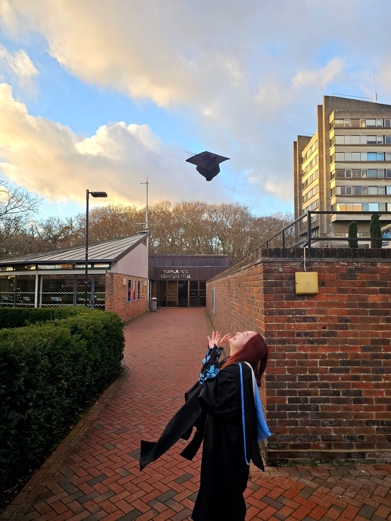 졸업식 시작은 4시 반이었는데, 안타깝게도 4시 반이면 영국 겨울엔 해가 이미 져서 거의 밤이다. 2시간 전부터 졸업 가운 픽업이 가능했는데, 졸업식 시작 전에 학교 캠퍼스에서 사진을 찍고 싶었다. 시간을 계산해 보니 왕복 이동 시간을 고려했을 때 캠퍼스에서 사진을 찍을 수 있는 시간은 겨우 30분 남짓이었다. 친구와 함께 미션이 부여된 셈이었다.