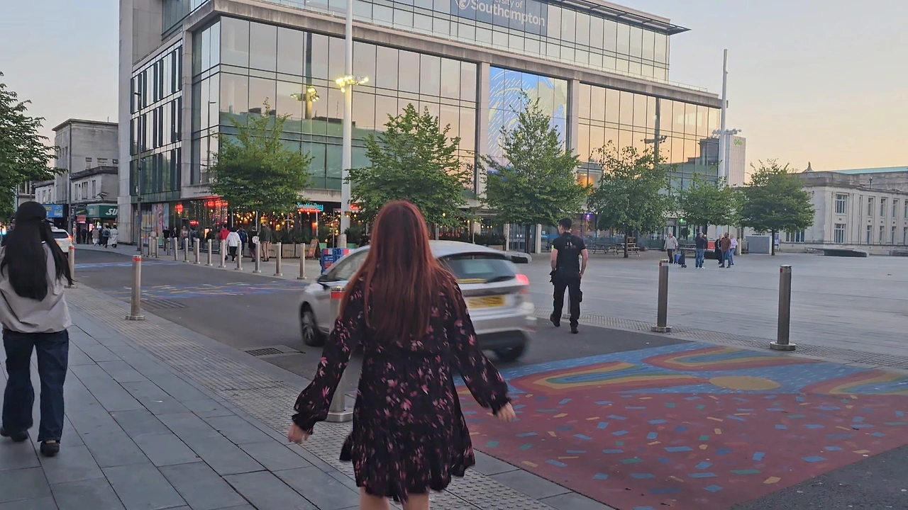 배불리 먹은 뒤엔, 시티 센터로 영상 찍으러 갔다. 사우스햄튼 시내에서 단 한 번도 내가 나오도록 영상을 찍은 적이 없단 걸 깨닫고, 작정하고 원피스 입고 나온 거였다.