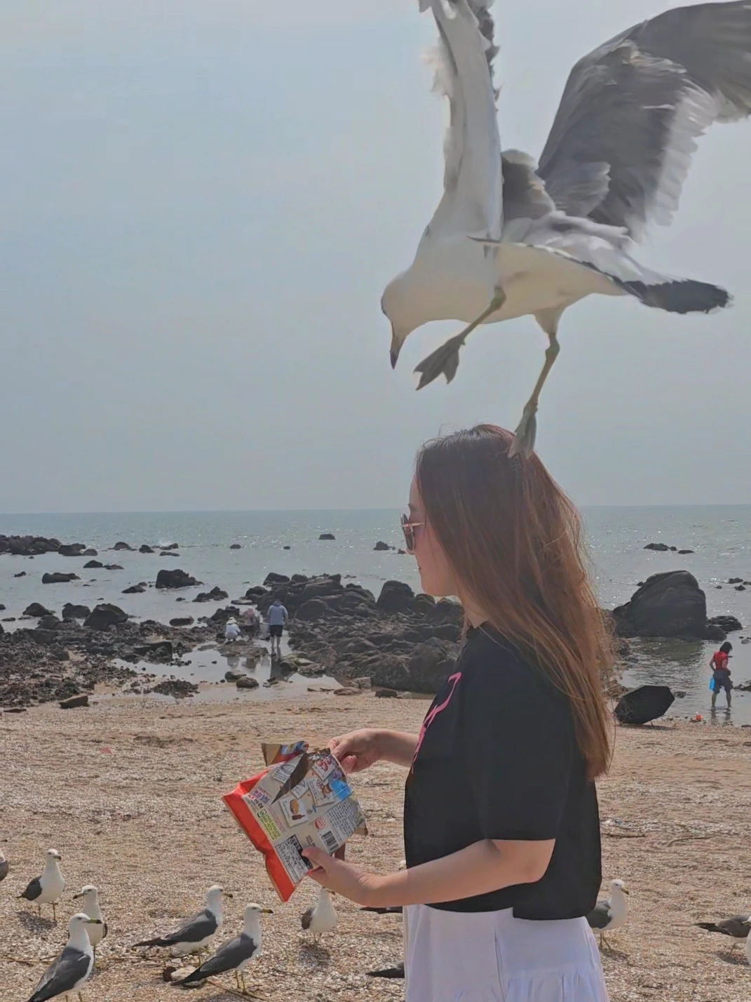 가장 하이라이트는 바닷가에서 갈매기들에게 새우깡을 나눠줄 때였다. 사우스햄튼에서 이미 갈매기는 맨날 봐서 익숙했는데, 그렇게 내 주위로 한 3-40마리가 몰려드니 무서웠다. 가까이서 푸드덕푸드덕거리면 갈매기가 장난 아니게 크게 느껴진다. '얘네는 나를 해치지 않는다. 해치지 않아.'라는 혼잣말이 절로 나왔다. 해치지 않을 거란 믿음은 있었지만, 너무 내 얼굴과 얼굴 위쪽에서 큰 게 왔다 갔다 거려서 자꾸 고개를 피하게 되었다. 내 머리 크기와 갈매기를 보라.