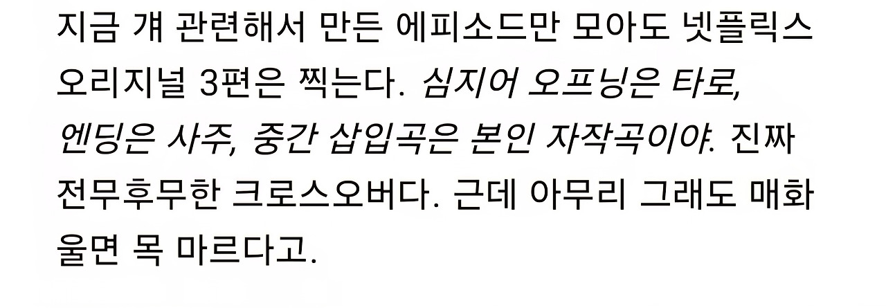 많이 언급한 자작곡 '사랑해'만 봐도, 그때 이틀 동안 밥 한 숟갈도 못 넘기고 물하고 두유, 주스 정도만 넘겼다. 그러니 '내가 이 곡이라도 썼구나. 잘했어.'로 마무리하지 않으면 계속 살아가기가 어렵다. 의미 부여를 하지 않고, 이걸 통해서 뭘 얻었는지 분석하지 않고, 감정만 느꼈다면 진작 병원 실려갔을 거 같다. 방어기제는 어쨌거나 나를 살리고 보호하기 위함이다.