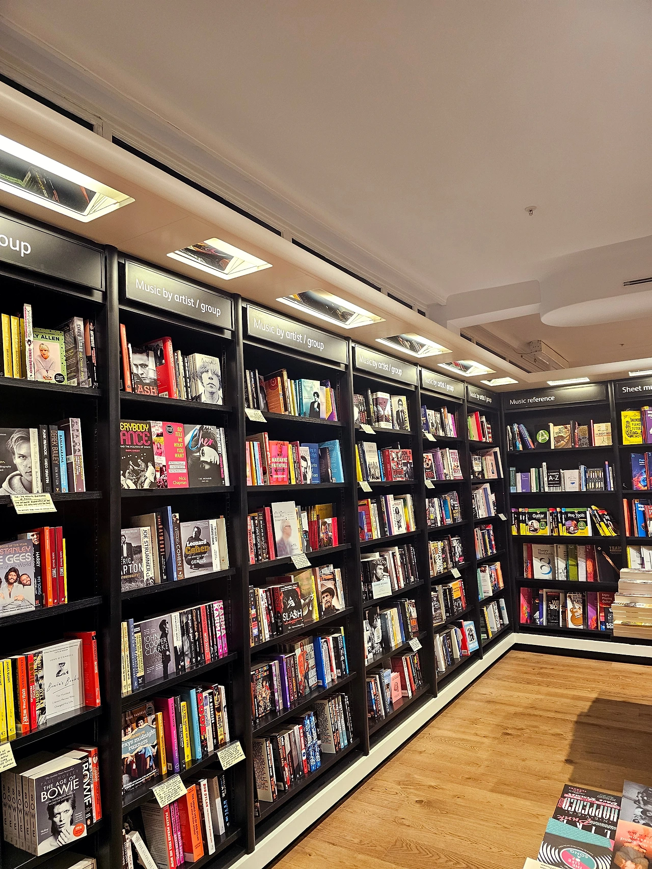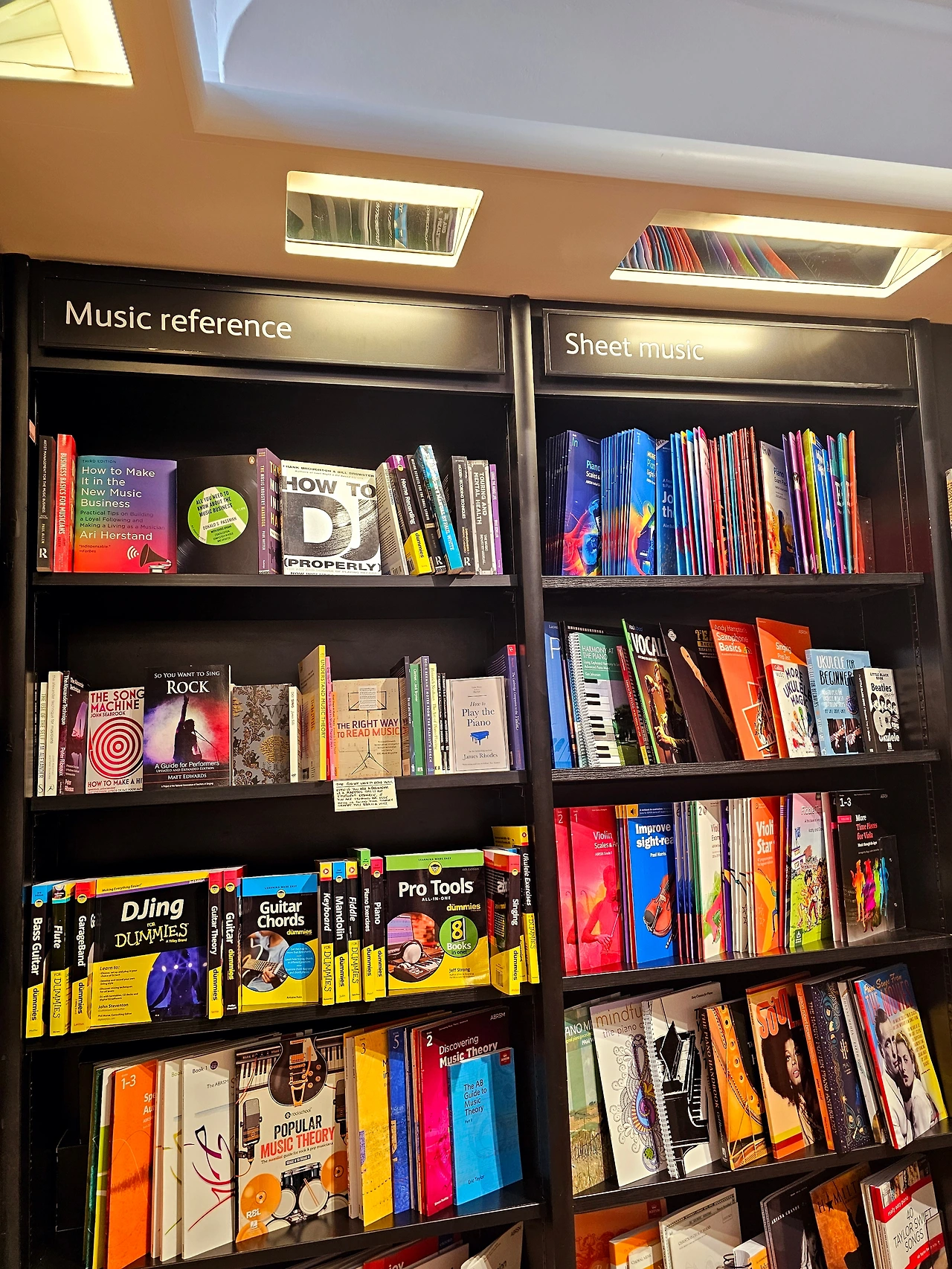 위 사진처럼 거긴 원래보다 음악 서적이 3배 이상 많아서 좋았다. 중학생 때부터 한국 교보문고를 가면, 실용음악 서적이 터무니없이 적게 느껴졌다. 음악 코너는 에세이 같은 코너와 다르게 매번 신간이 뭐가 나오는지 다 알 수 있을 정도였다. 그러니 저런 곳은 음악 책 천국 같았다. 영어는 전세계적으로 출판이 되니, 서적 수가 차원이 다르단 걸 느꼈다. 음악 기준으로 결코 비교 불가다. 아마 다른 분야보다 더 심하지 않을까. 작년에 음악 전문 출판사와도 미팅을 해보았지만, 한국은 '발성 잘하는 법', '화성학 독학하기'같은 이론 서적이 대부분일 뿐이다. 위 사진에 보면 책장에 'Music by artist / group'라고 되어 있는데, 한국은 음악가에 대해 깊이 있게 탐구한 책이라면 BTS 아니면 임영웅, 초대형 팬덤을 겨냥한 책 몇 권뿐이다.