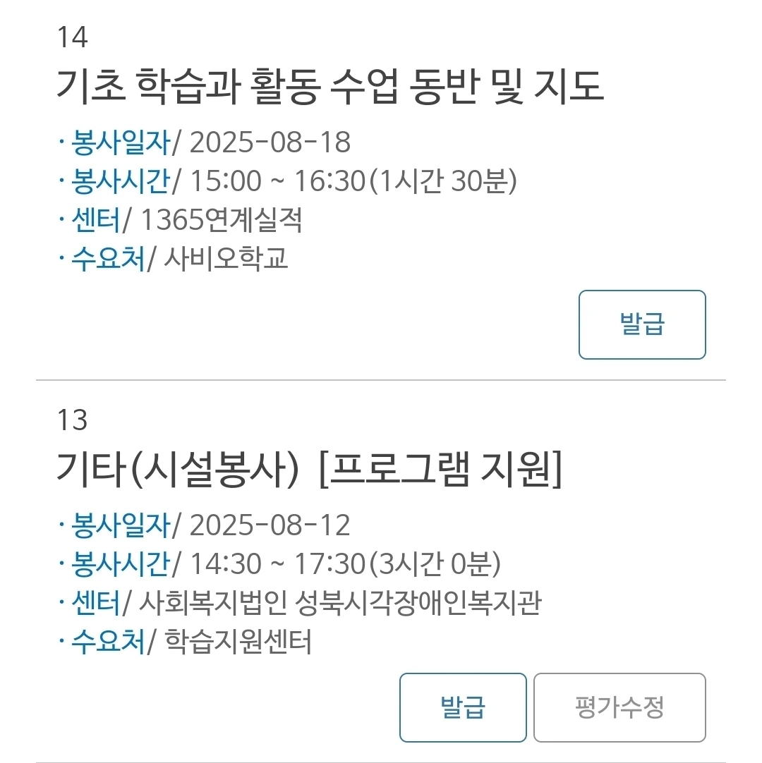 2017년에 봉사할 때에는, '아 귀찮아요'하고 봉사 시간 없어도 된다고 안 받았다. 봉사 시간을 입력해 주시려면 매번 서류를 적어내야 하는데, 어차피 평생 봉사 시간이 필요 없을 걸 알았기 때문이었다. 그런데 뒤늦게, 이런 기록이 있으면 내가 뿌듯하단 걸 깨닫곤 2019년부턴 남겼다. 생각난 김에 찾아보니, 지난 3개월 동안 25시간이 기록되어 있다.
