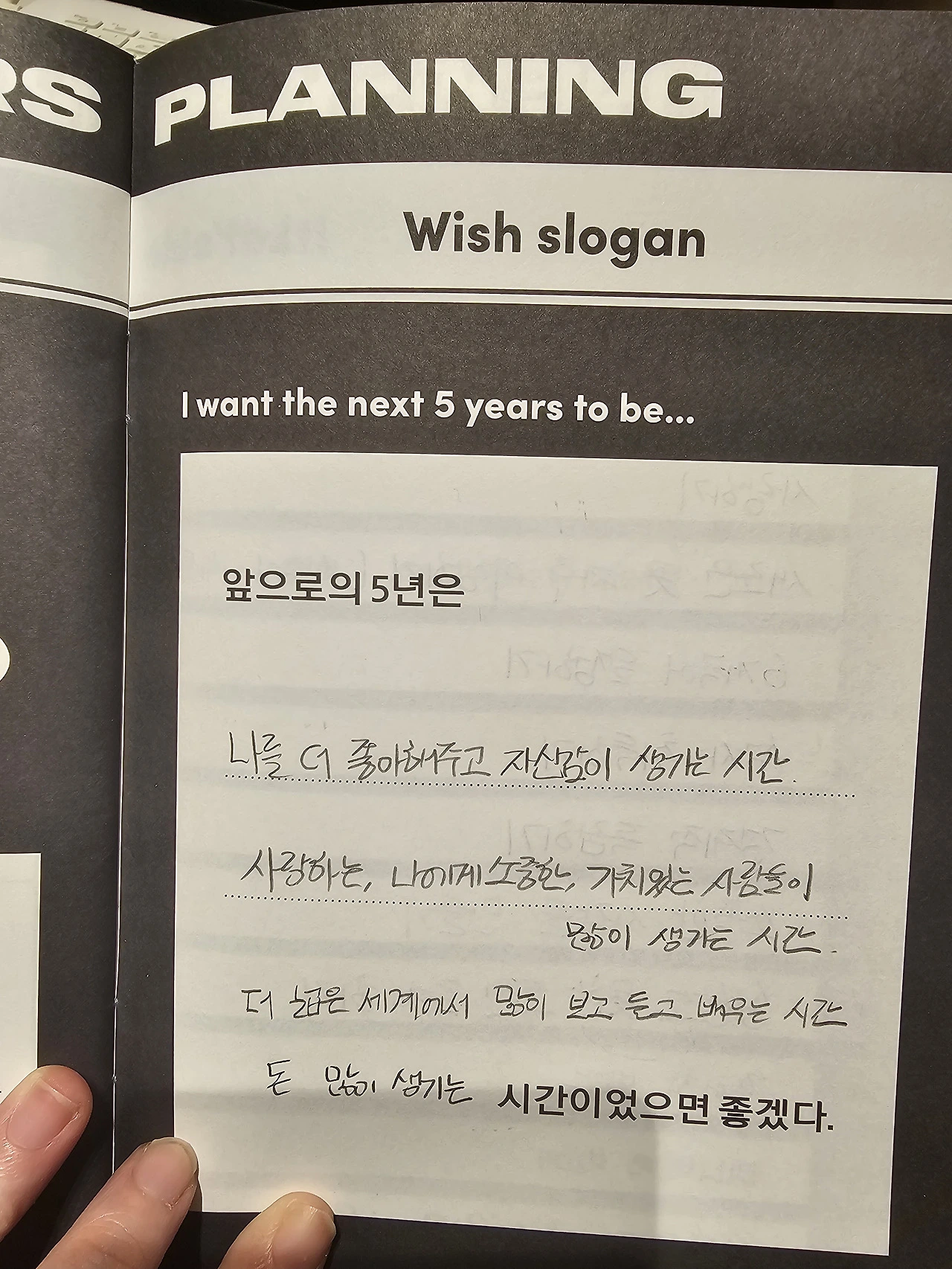 무엇보다 나를 사로잡은 건 이 리스트다. 이 노트는 2022년 하반기에 썼다. 앞으로 5년 안에 이루고 싶은 목록인데, 3년도 안 되어 거의 다 이뤘다. 흐뭇하다.