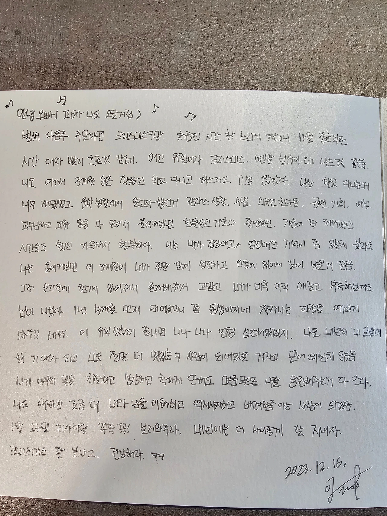 내가 쓴 건데 공개해도 뭐 어떠한가. 괜찮다. 일단 내가 언제부터 저렇게 손글씨를 예쁘게 썼는지 모르겠다. 정성이다 정성이여 아주. 한치 앞도 모르고.