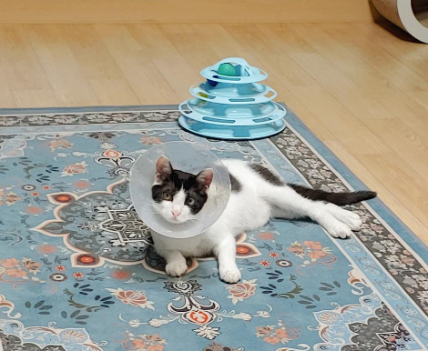 3일 정도 지나자 생기가 돌기 시작하였다. 1주일이 지나서 실밥을 제거한 후, 넥 카라를 풀어주라고 하는 시간 즈음에 풀어주었더니 얼떨떨한 표정으로 나를 쳐다보았다.