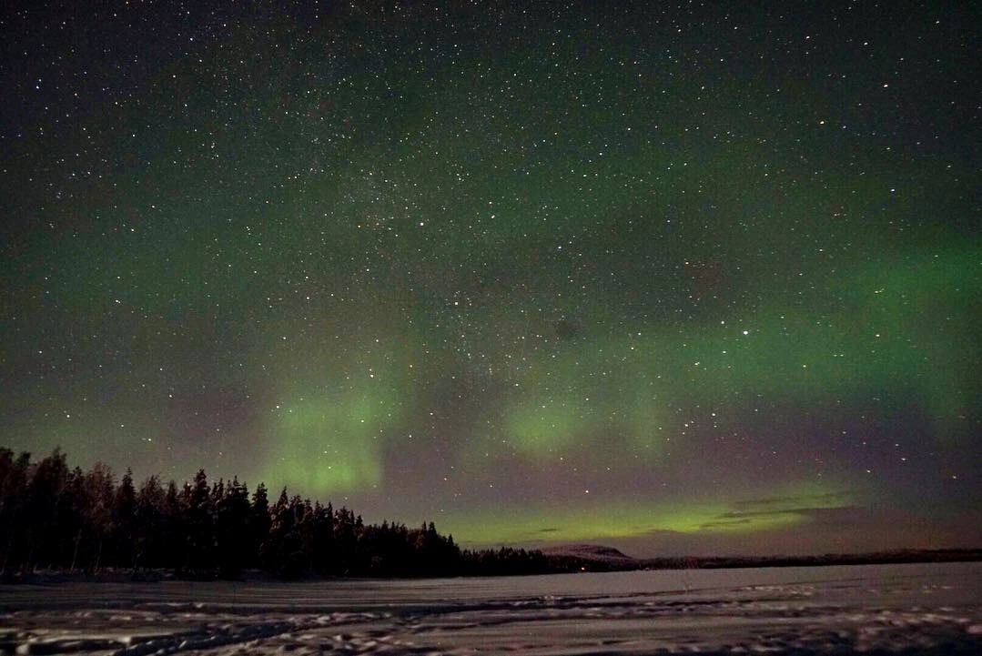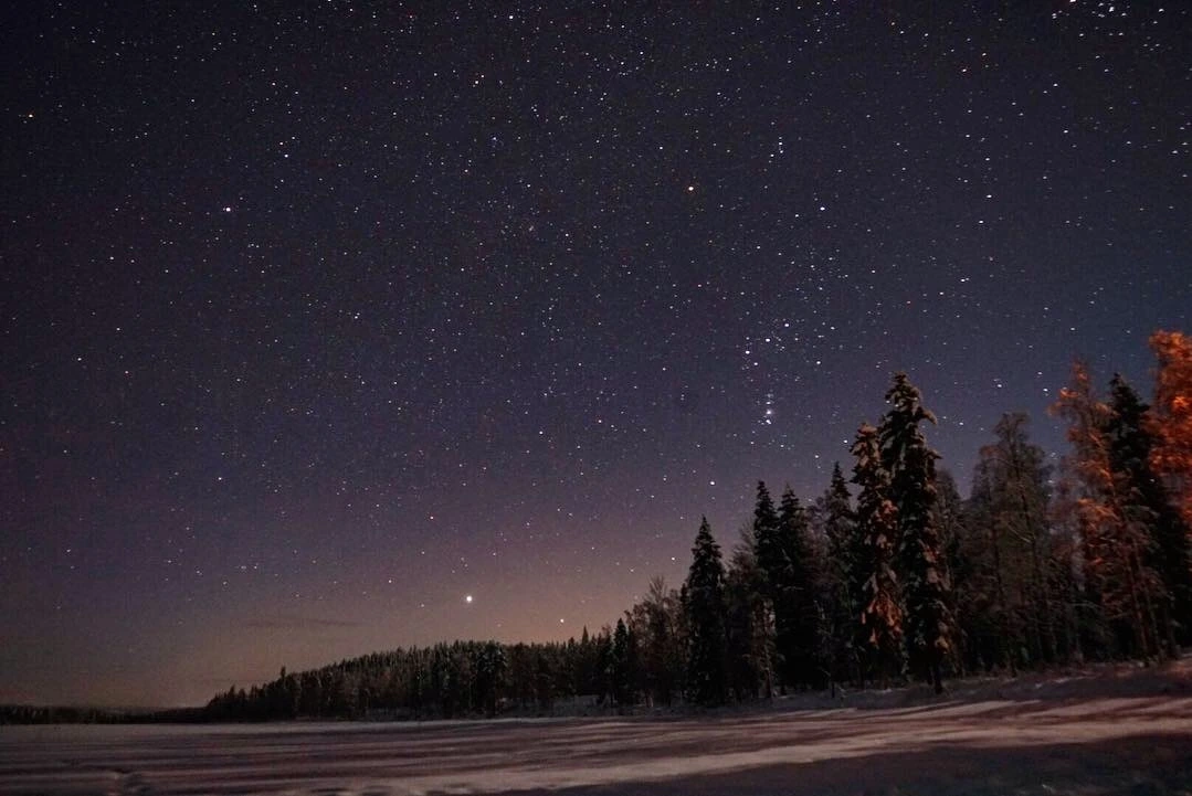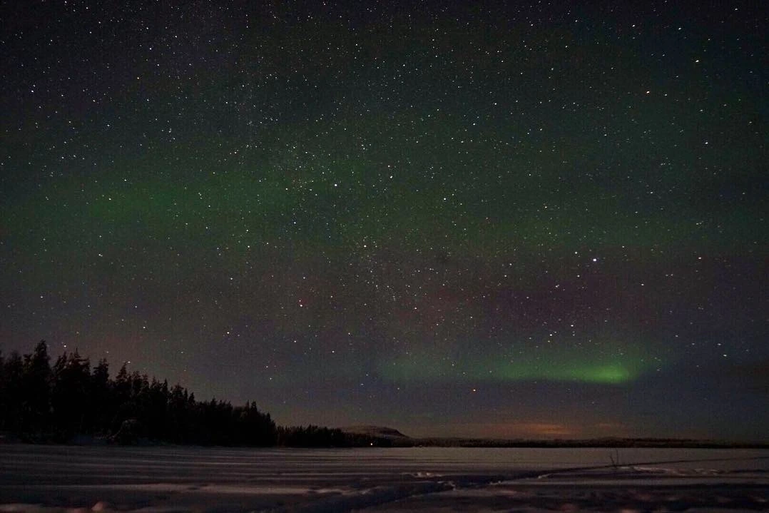 하늘을 찌를듯 솟은 소나무들을 지나 도착한, 하얀 눈이 이불처럼 덮은 호수 위에사 우리는 쏟아질 듯한 수많은 별들과 옅은 초록빛으로 흔들거리는 오로라와 조우했다.