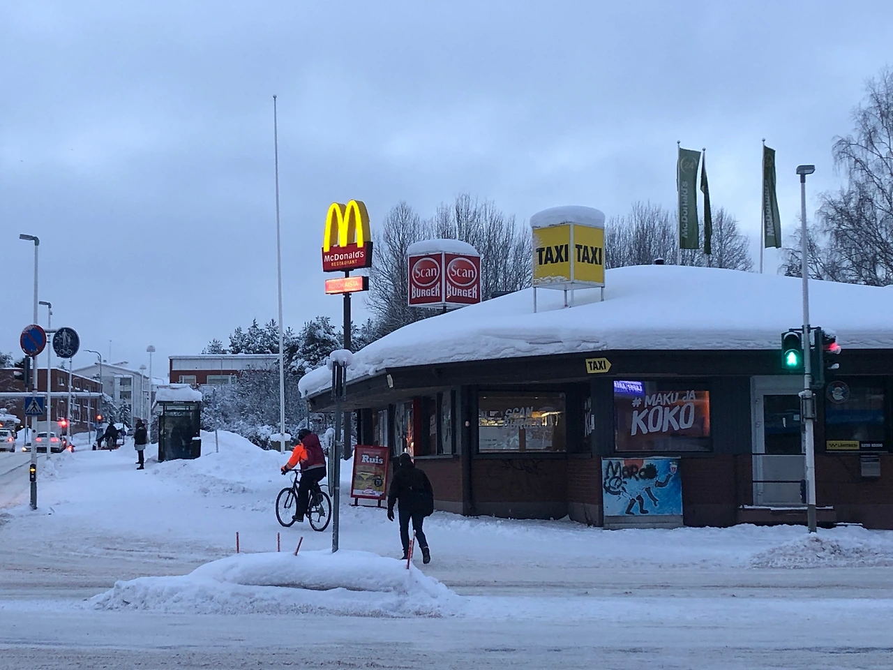 로바니에미는 핀란드의 수도 헬싱키에서 두 시간 정도 떨어진 북쪽의 라플란드에 속한 소도시다. 유럽의 흔한 아기자기한 소도시와 같은 매력은 그다지 찾아보기 힘들지만, 겨울의 로바니에미는 거리고 건물이고 도로고 온통 새하얗게 표백되어 마치 동화 속 겨울 왕국에 온 것만 같은 착각에 빠지게 한다. 물론, 그런 환상은 북유럽의 살인적인 물가가 금새 산산조각 내버리고 만다. 우리는 레스토랑에서 제대로 된 식사는 꿈도 꾸지 못하고, 게스트 하우스 인근의 대형 슈퍼마켓에서 쉽게 구할 수 있는 냉동 피자와 냉동 파스타로 하루하루를 연명했다.
