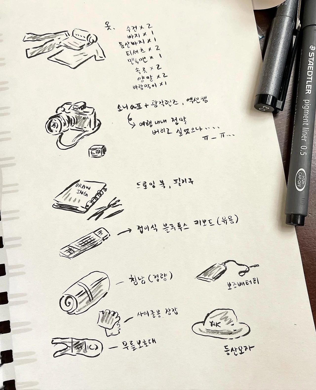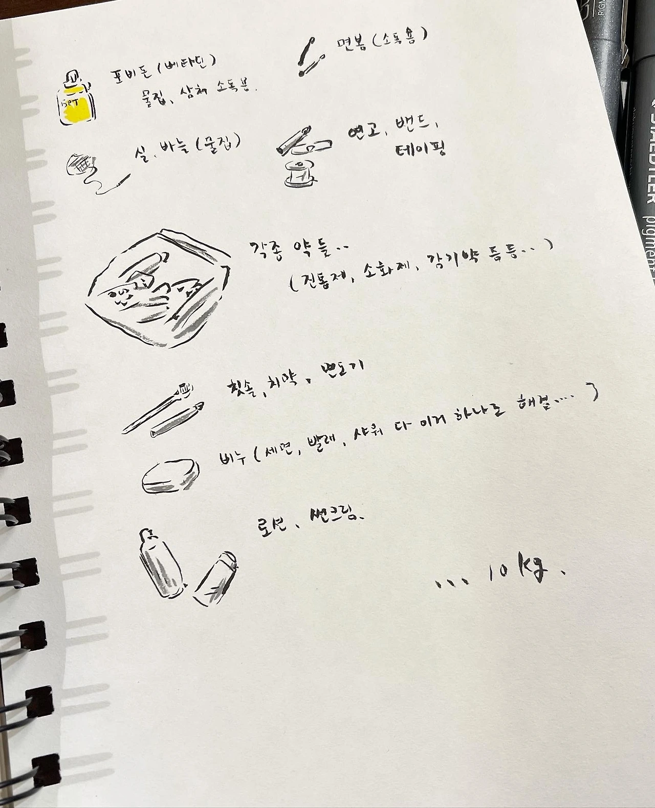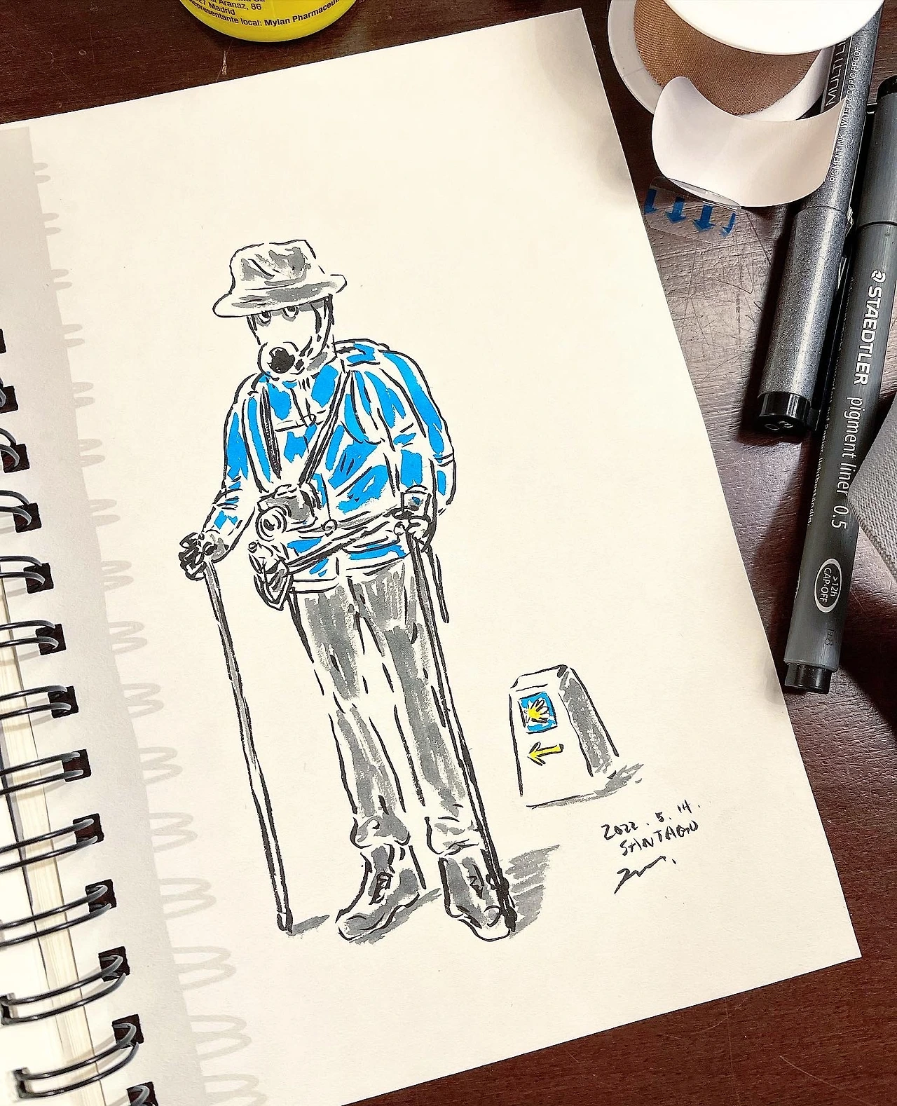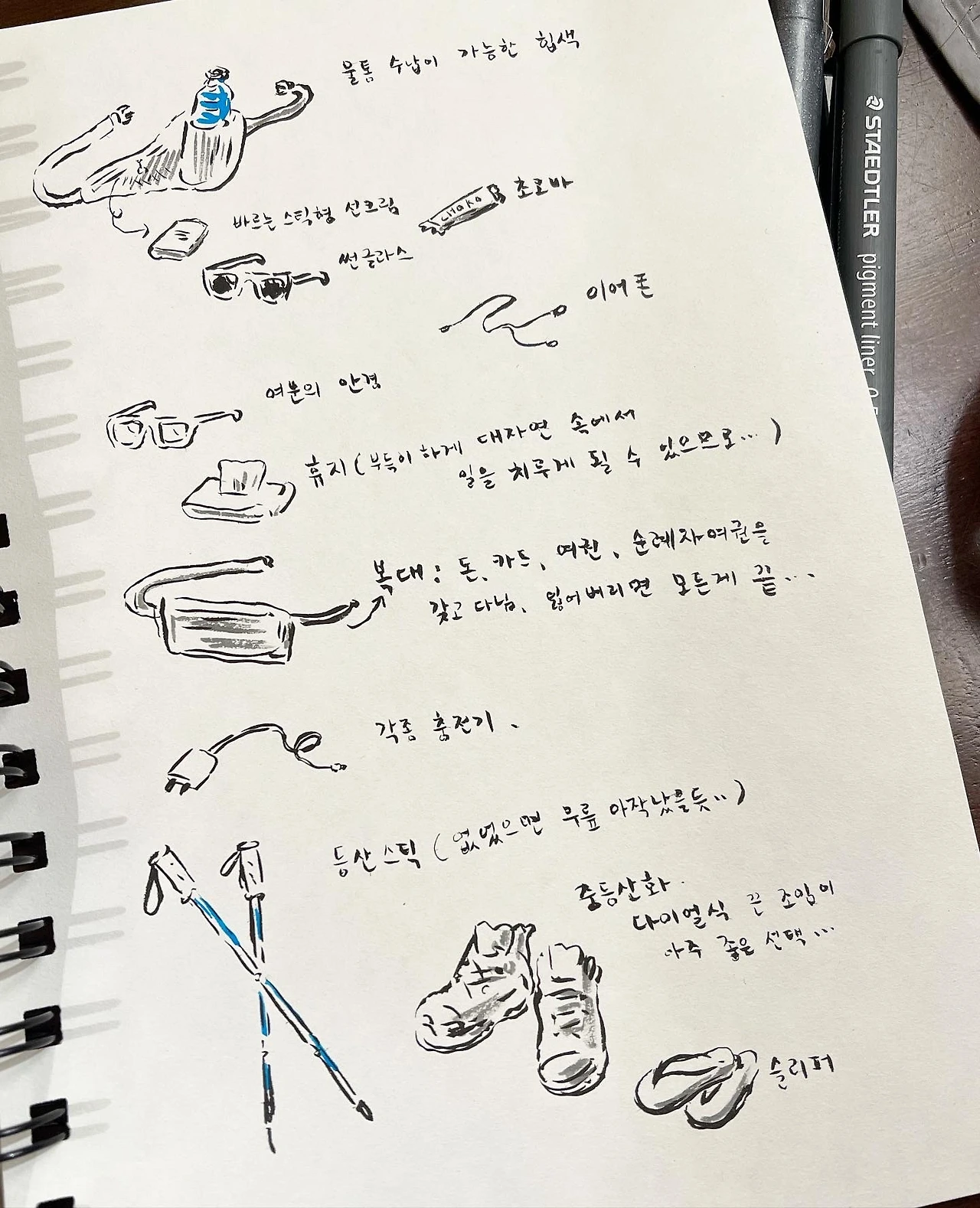 그 외에도 바로 물을 꺼내 먹을 수 있는 힙색, 자주 신발을 벗게 되는 순례길 특성상 끈을 묶지 않아도 쉽게 조이고 풀 수 있는 다이얼 방식의 등산화 등이 고된 여정에 작지만 중요한 편의를 제공해주었던 것 같습니다. :) 9년 전에도 그랬듯, 여행을 준비하면서 네이버 카페 <까미노 친구들 연합>에서 선배 순례자들의 여러 유용한 조언을 참고했고, 서촌의 카페 알베르게 @cafealbergue에서도 저의 여정을 공유하며 늘 큰 응원을 보내주셨습니다. 그리고 늘 댓글로 건강한 완주를 바라 주셨던 감사한 분들 덕분에 이곳에서 이렇게 여정을 되짚으며 여독을 풉니다. 이제 내일이면 이곳을 떠나게 되겠지만, 마음으로 함께 해 주신 모든 분들의 따뜻한 호의는 언제까지고 제가 걸어갈 길 위에서 오래도록 함께 할 거예요. 감사합니다.