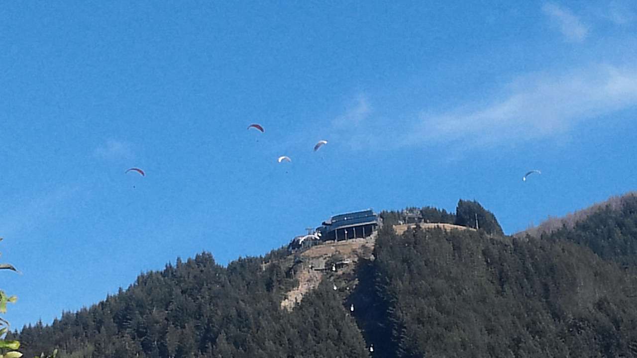 시내를 벗어나 곤도라를 타기 위해 한 15분쯤 올라갔다. 1인당 32불 하는 곤도라를 타기 위해 긴 줄이 이미 만들어져 있다. 산에서 오직 내려오기 위해 만든 다운힐 산악자전거를 매달고 올라가는 젊은이도 많았다. 한 차에 두대까지 실을 수 있다. 매우 급한 경사를 타고 잠시 올라가니 호수를 내려다 볼 수 있는 라운지가 있다. 그 산 위에서 산악자전거를 타고 아래에 까지 내달리는 사람들도 있고, 스노우드 보드 타듯이 바퀴 달린 작은 차에 한둘이 타고 주어진 트랙을 내려오기도 한다.