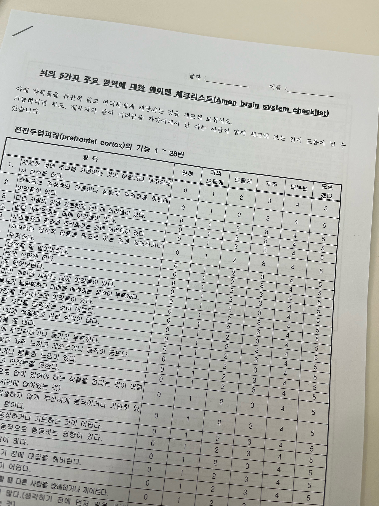 두 번째 상담 때 제출했는데 검사지를 확인하던 의사 선생님도 큰 특이사항은 없다는 식으로 말씀하셨다.