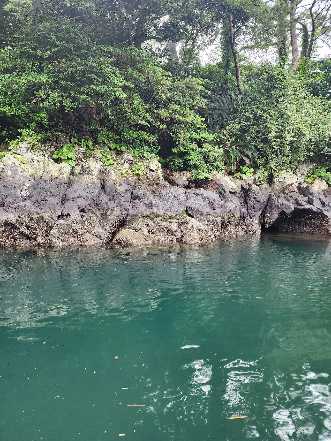 쇠소깍에서 태우를 탔는데 태우 운전하시는 분 말씀으로 어릴때 친구들이랑 놀다가 목마르면 돌 틈에 입대고 물먹었다고 하신다. 그런데 문화유산이라고 이젠 맘대로 못들어간단다.