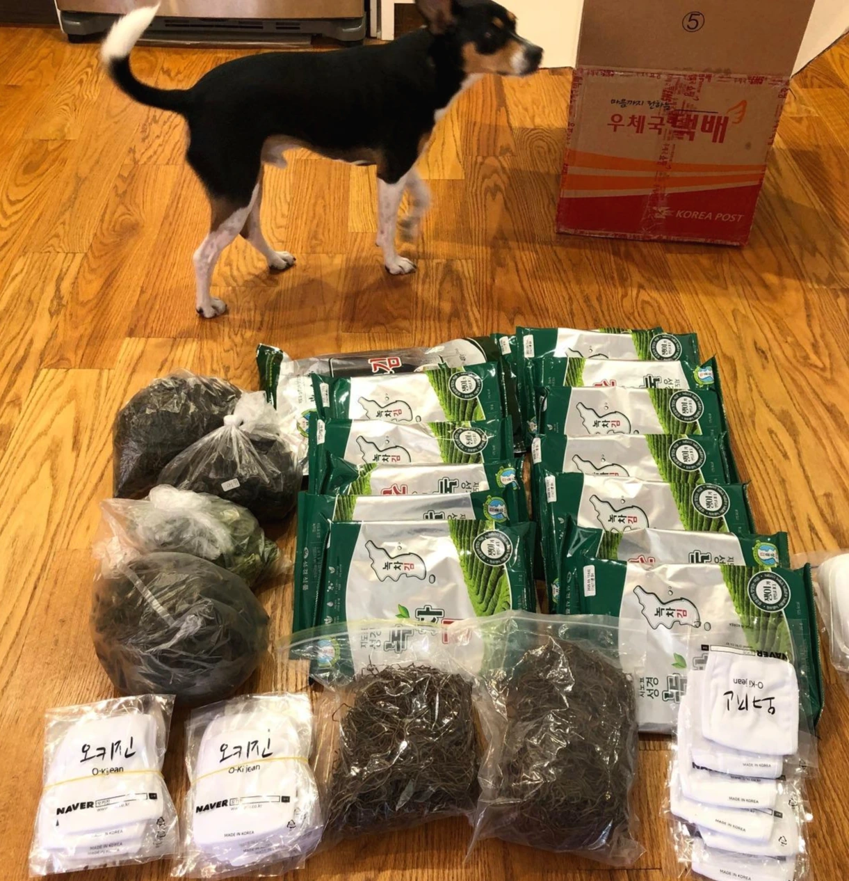 코로나 사태로 한인마트에 쉽게 가지 못하니 한국 식재료 하나하나가 귀해졌다. 그 와중에 마스크까지 못 구하는 상황이 되니 어쩔 수 없이 '택배 거부'를 잠시 접어두고 한국에 있는 가족들에게 SOS 요청을 했다. 하지만 혹시나 하는 마음에 마스크랑 그냥 김 같은 가벼운 것만 간단히 보내달라고 신신당부를 했다.