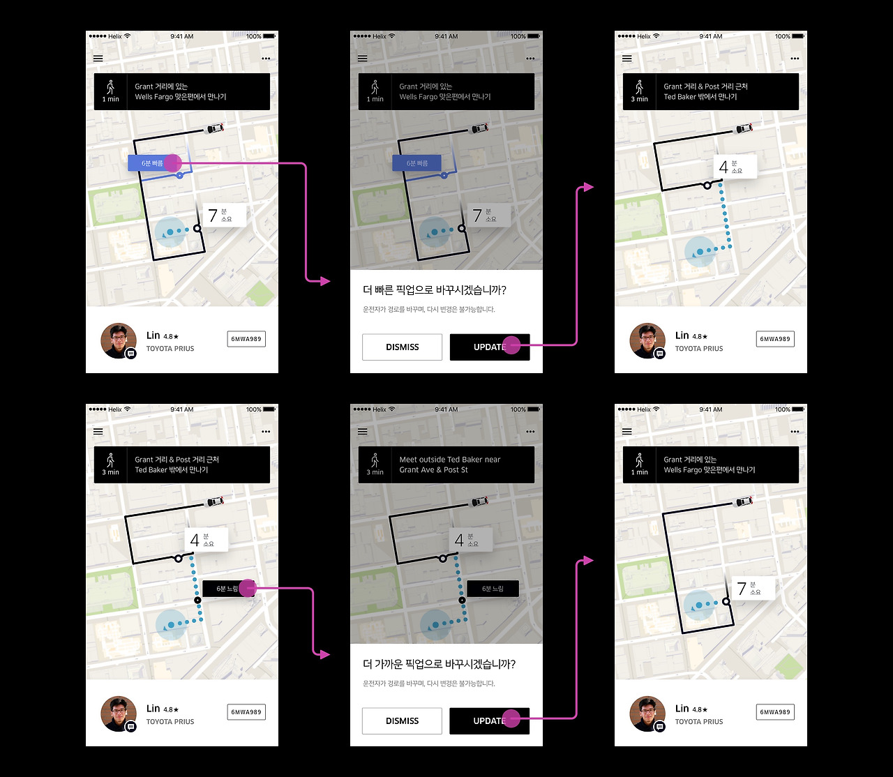 새로운 방식이 탑승자를 대신해서 번거로운 일을 처리해준다면, 확정 화면은 확신을 심어주고 픽업이 어떻게 진행되고 있는지를 보여주어야 한다.