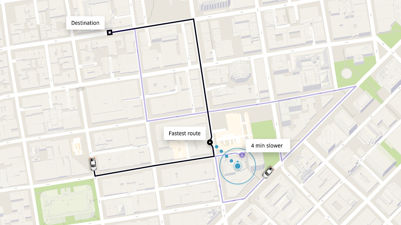 랑데부의 핵심은 탑승자와 운전자가 어디서 만나고, 어떻게 거기까지 가는지를 명확히 안다는 것이다. 기존 우버 앱은 길찾기를 제대로 못했고, 주로 거리 주소와 지도에 의존하고 있었다.