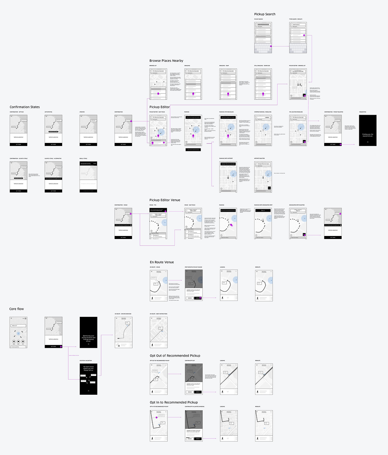 나는 위치 확신 점수라는 아이디어에 근거하여 플로우를 디자인했다. 우버가 탑승자의 위치를 확실히 안다면, 모든 번거로운 일을 처리해준다. 그렇지 않다면, 탑승자가 자신의 위치를 직접 설정하게 한다.