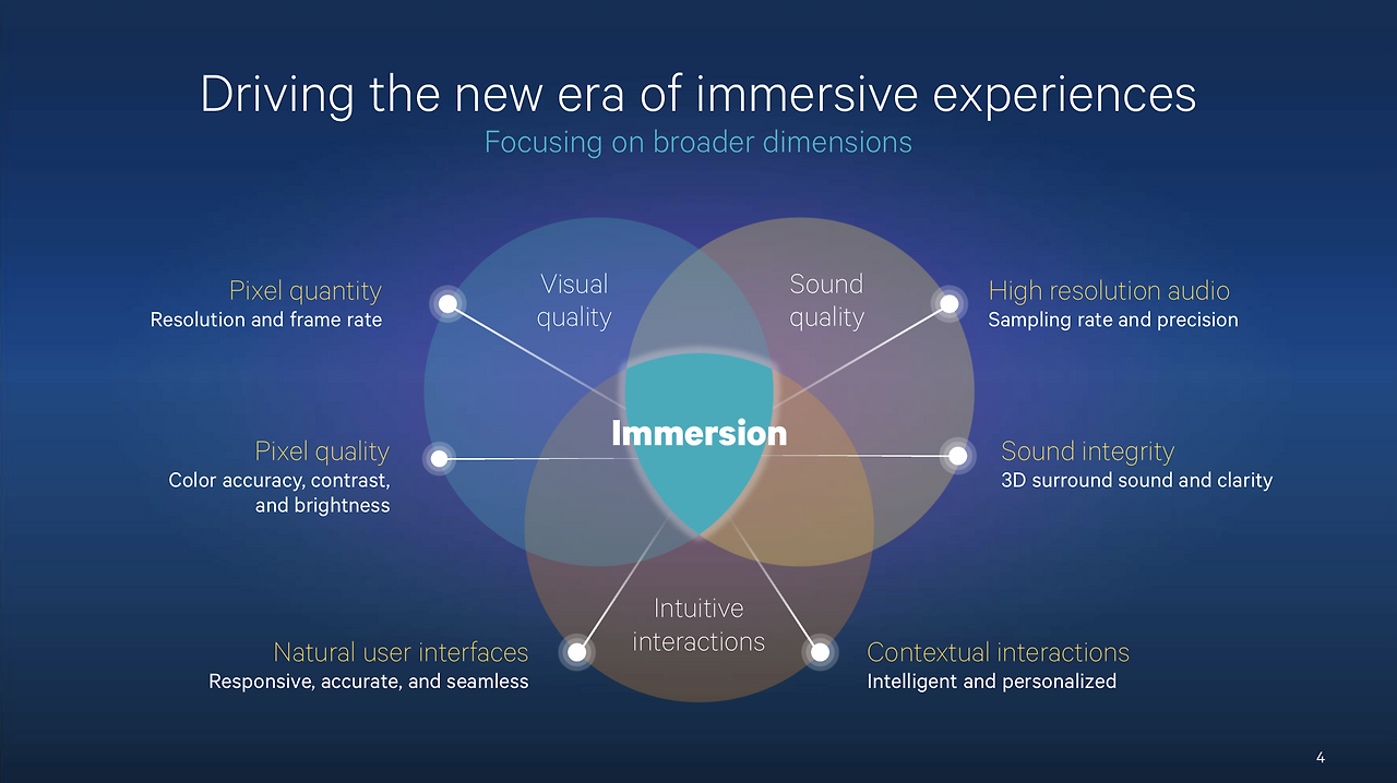 Qualcomm Technologies, Inc의 보고서에 따르면, 이러한 몰입 경험이 가능하게 된 것은 다음과 같은 세 가지 측면에서 기술이 발전 및 융합한 결과라고 볼 수 있습니다. 1) Visual Quality(시각적 퀄리티) 2) Sound Quality(청각적 퀄리티) 3) Intuitive Interation(직관적 상호작용)이 이에 해당하는데요, 저희는 이 자료를 바탕으로 몰입 경험에서 이 세 가지 요소의 필요성 및 활용 방안에 대해 알아보았습니다.