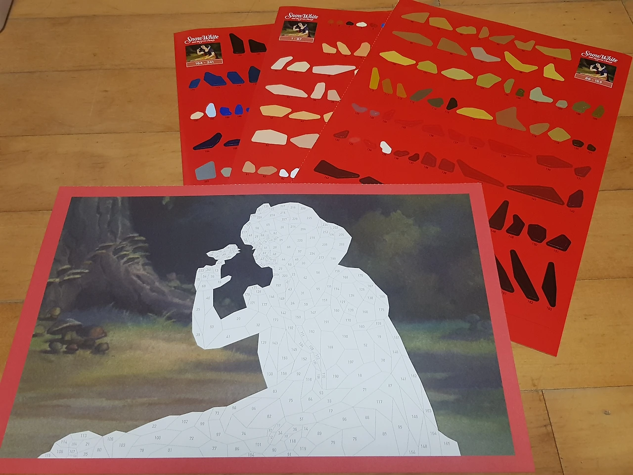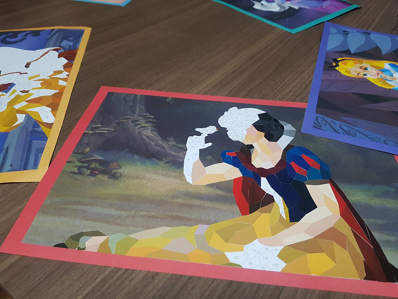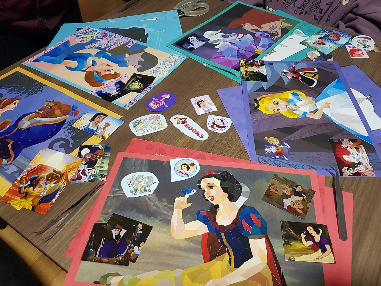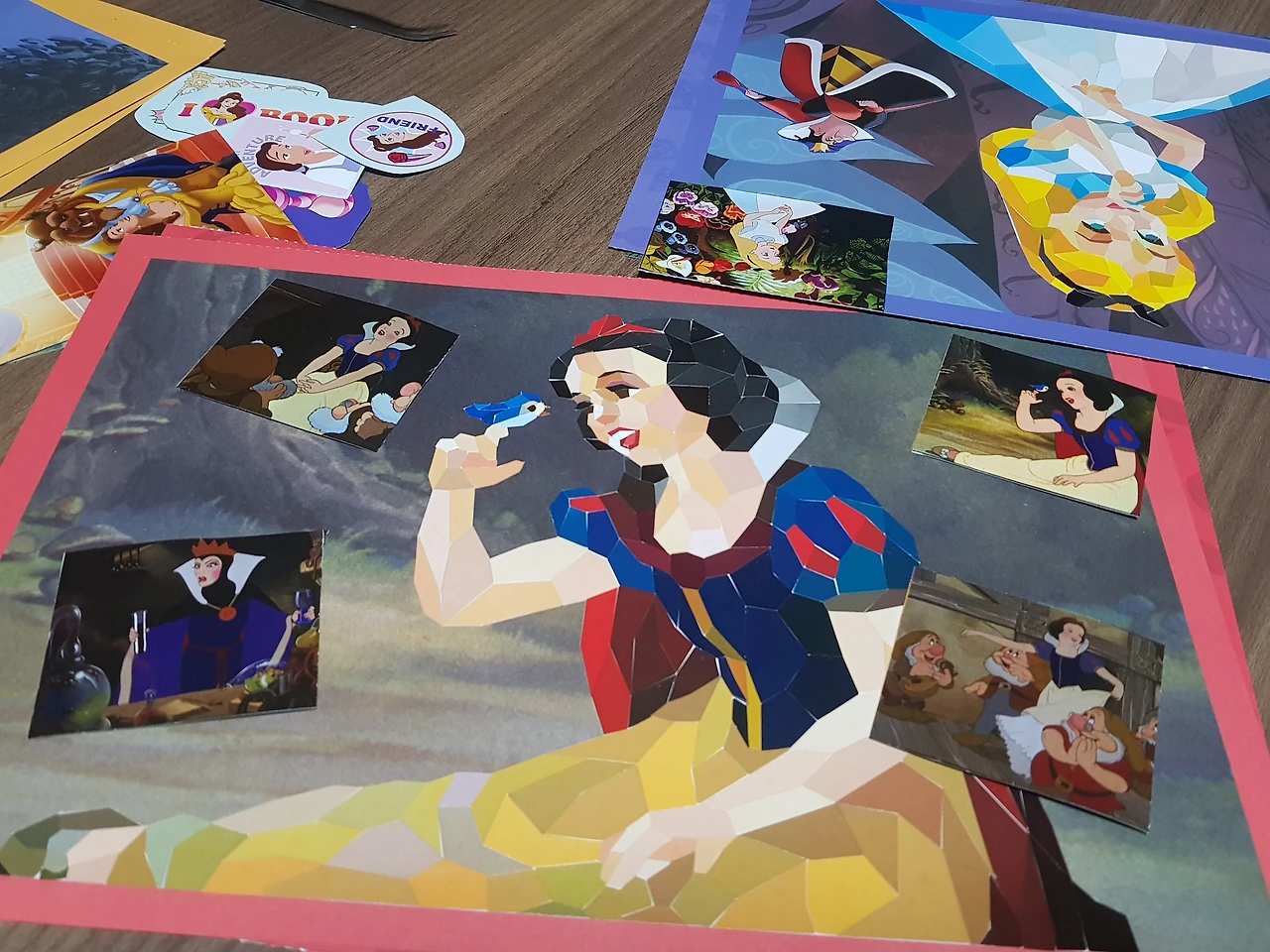 5장의 도안은 각각 백설공주, 인어공주, 미녀와 야수, 신데렐라, 앨리스였다. 미녀와 야수는 누가 봐도 가장 예쁜 도안이었다. 대신 가장 난이도는 높았지만 어디까지나 다른 도안에 비해 상대적으로 복잡한 정도였고, 지난번 미니어처에 비하면 비교도 되지 않는 간단한 작업이었기에 은근 모두 탐냈다. 쉬워보이면서도 예쁜 앨리스는 역시 내심 노리는 대상이었다. 완성본의 매력도가 떨어지는 신데렐라와 인어공주는 인기가 없었고, 백설공주는 중간은 가는 정도였다. 비장하게 이어진 가위바위보 결과에 따라 각각 도안을 선택했다. 나는 적당히 무난한 백설공주 도안을 얻었다.
