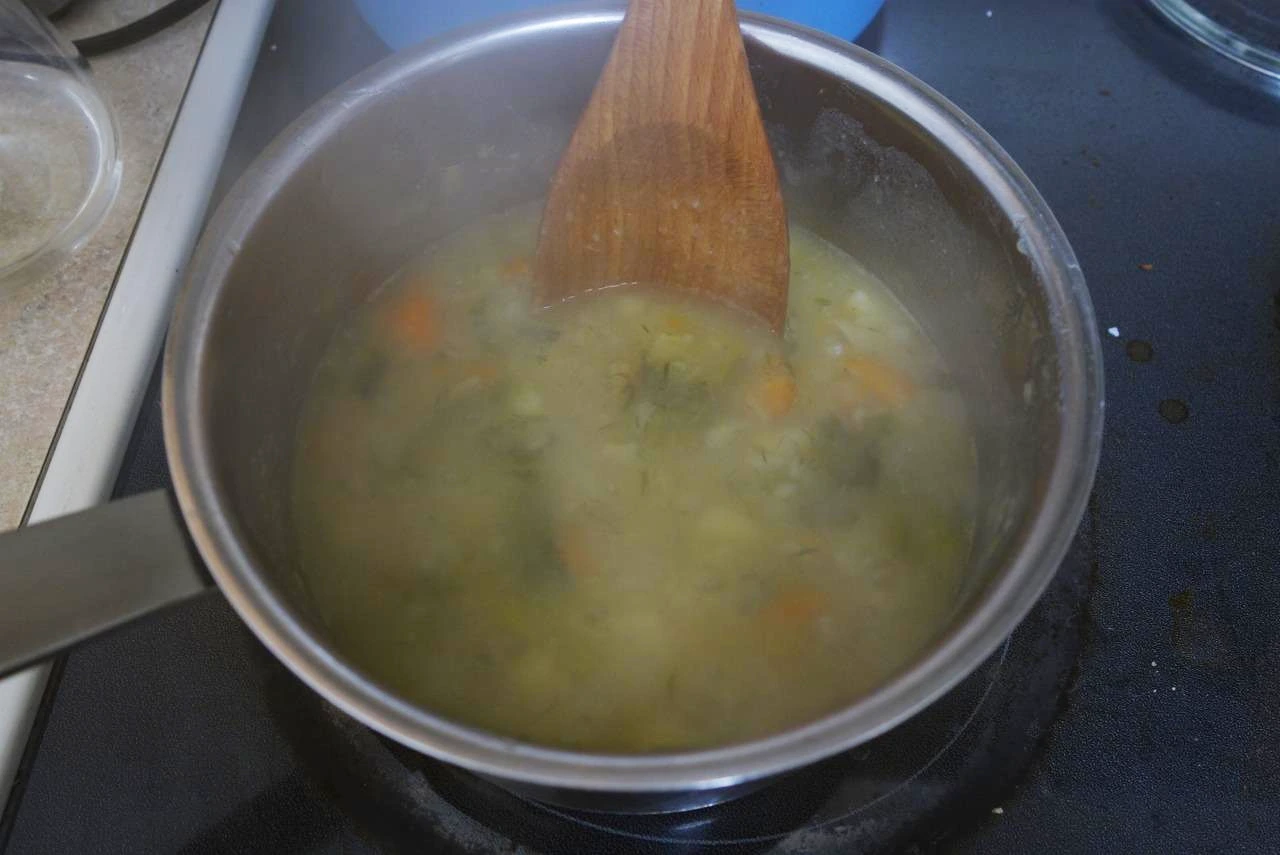 그러고 나서 나무 주걱으로 (포크도 괜찮고) 야채를 이렇게 으깨 준다. 그러면?